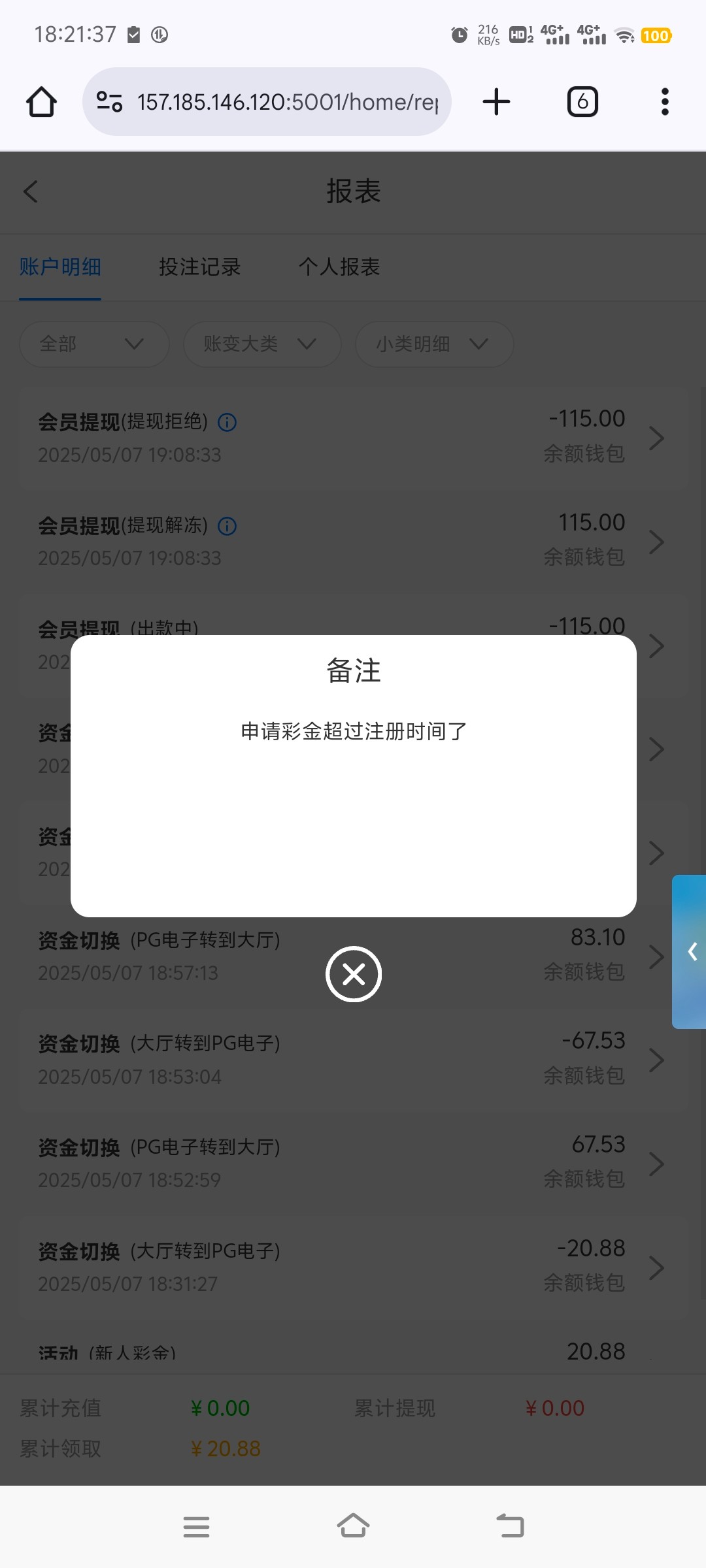 说我超过注册时间 ,余额直接清零