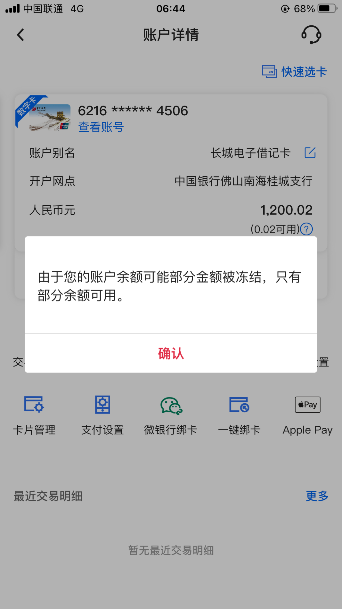这种冻结我打电话问银行客服,他说查询不到,得自己去柜台查 我没有去
