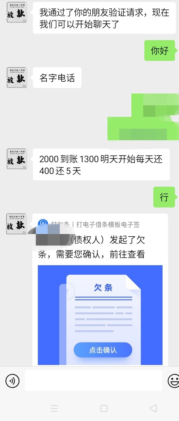不知道哪里来的财务,直接加我微信,问我需不需要借款,一开始跟我说1万到手6000,每天还2000。我没要,然后给了一笔2000到手1300,实际到手900,然后每天还400,还5天。没要任何资料,直接转了,属于稳如工资吗?