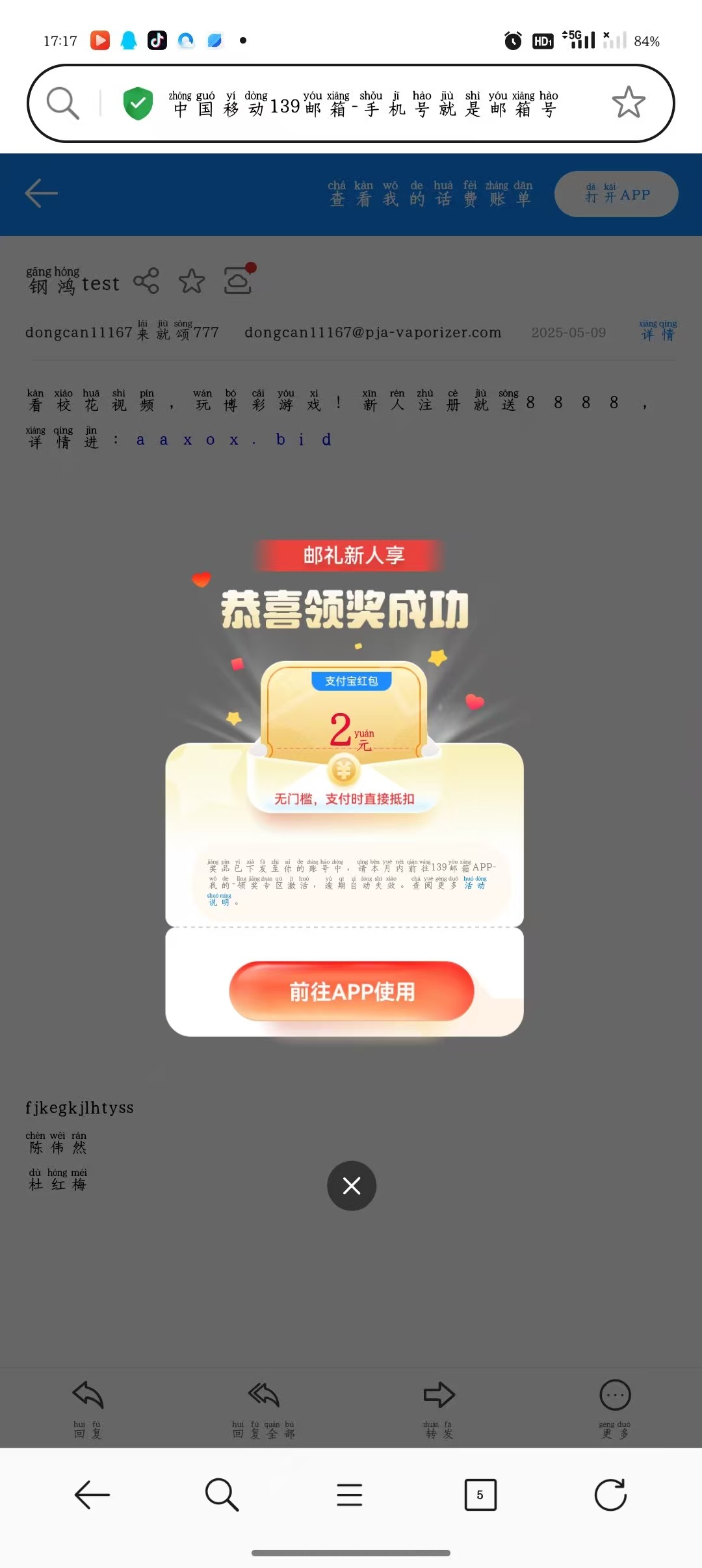 139邮箱新用户2元支付宝红包抵扣劵