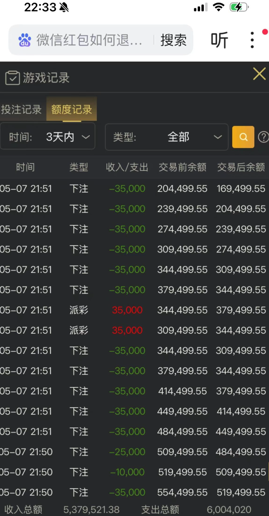 是充了9万几天干到了一千万,他一天就提现了。先到了70wu,剩下的一直没到账他找客服取消提现了,又去玩然后就上头输了直接继续充值直接洗白。。。9万干到一千个,已经给你出500个了还要怎么样呢。。。上头的时候肯定会不停的充值的