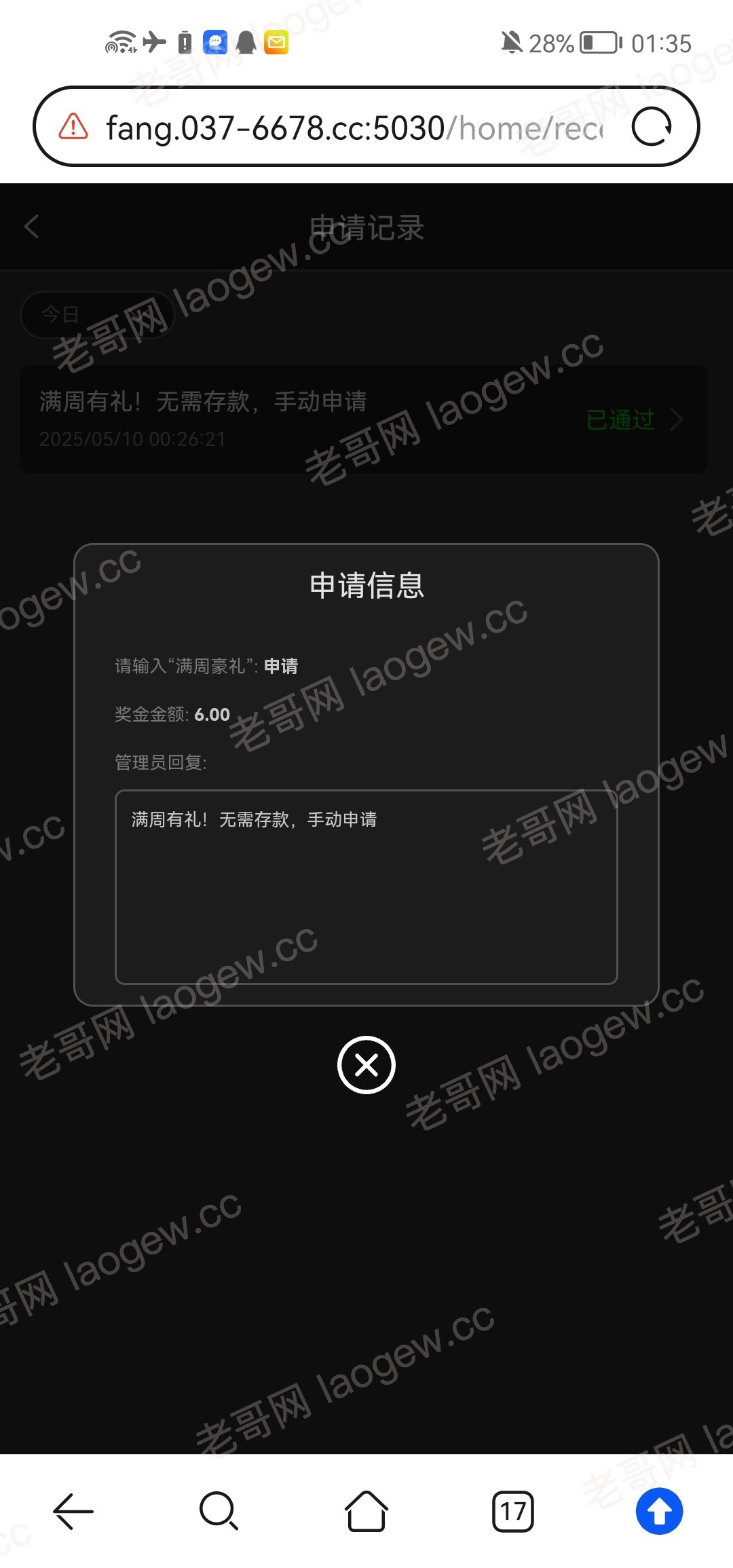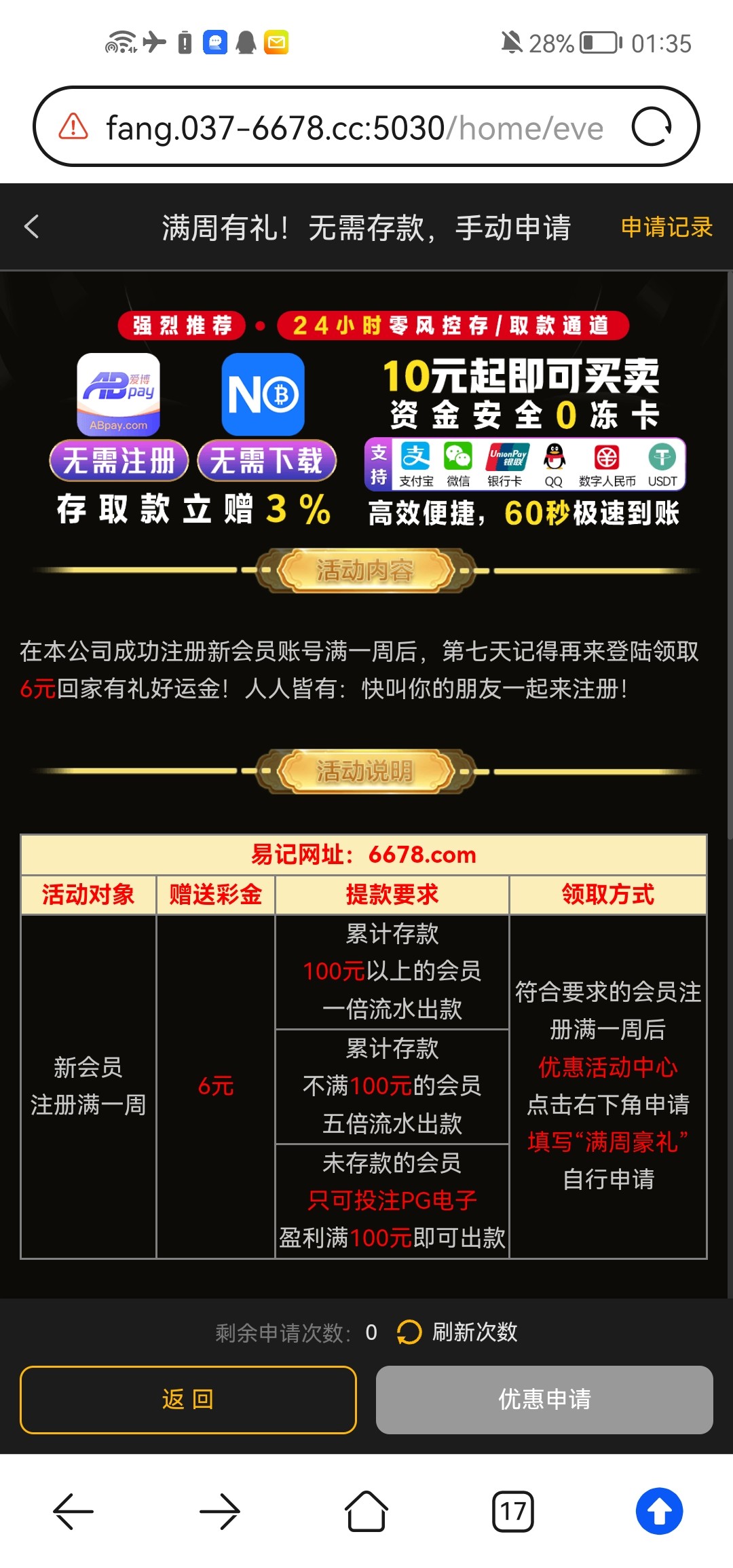 注册满七天的老哥可以申请一下,没充值过的也能申请