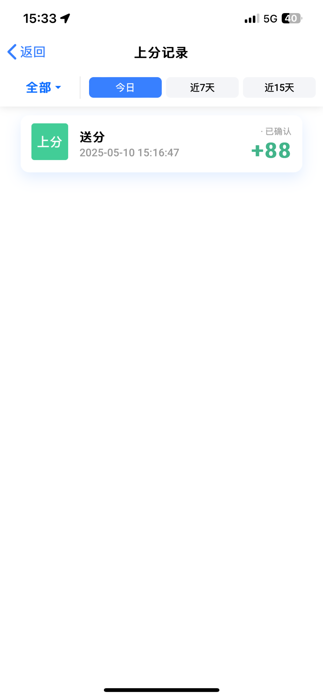 最近支付宝没有上分记录,我只有18