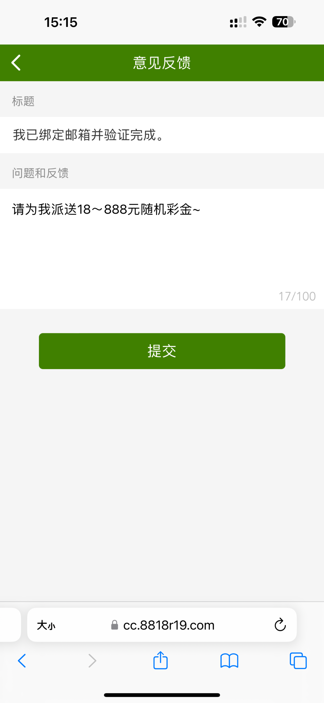 历史有充值过1000的绑定邮箱发站内信申请很快就派送了