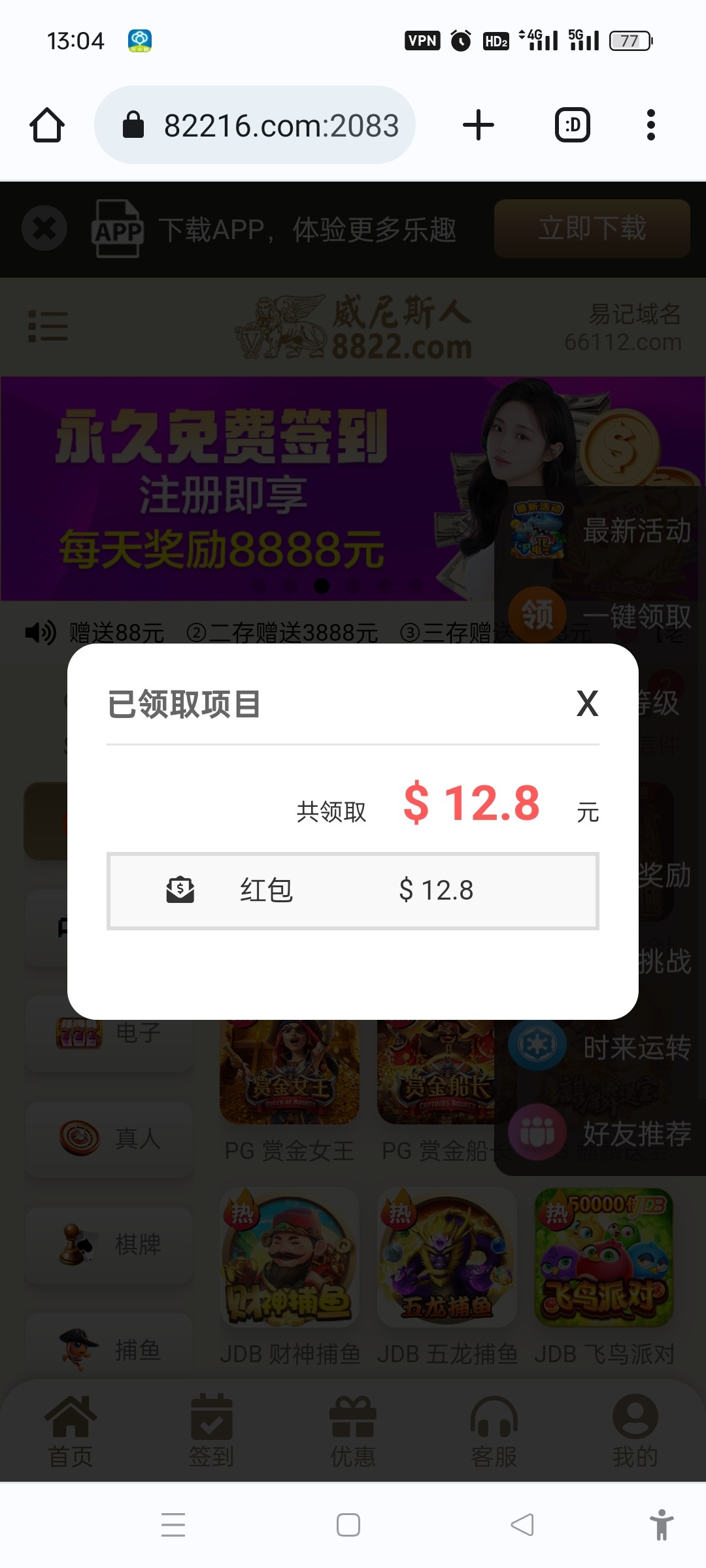 确实有12.8 没充值过