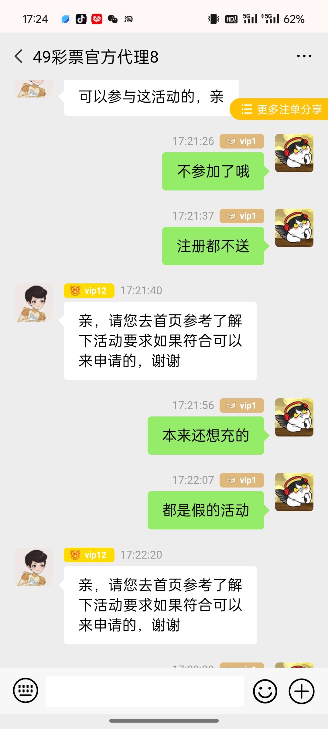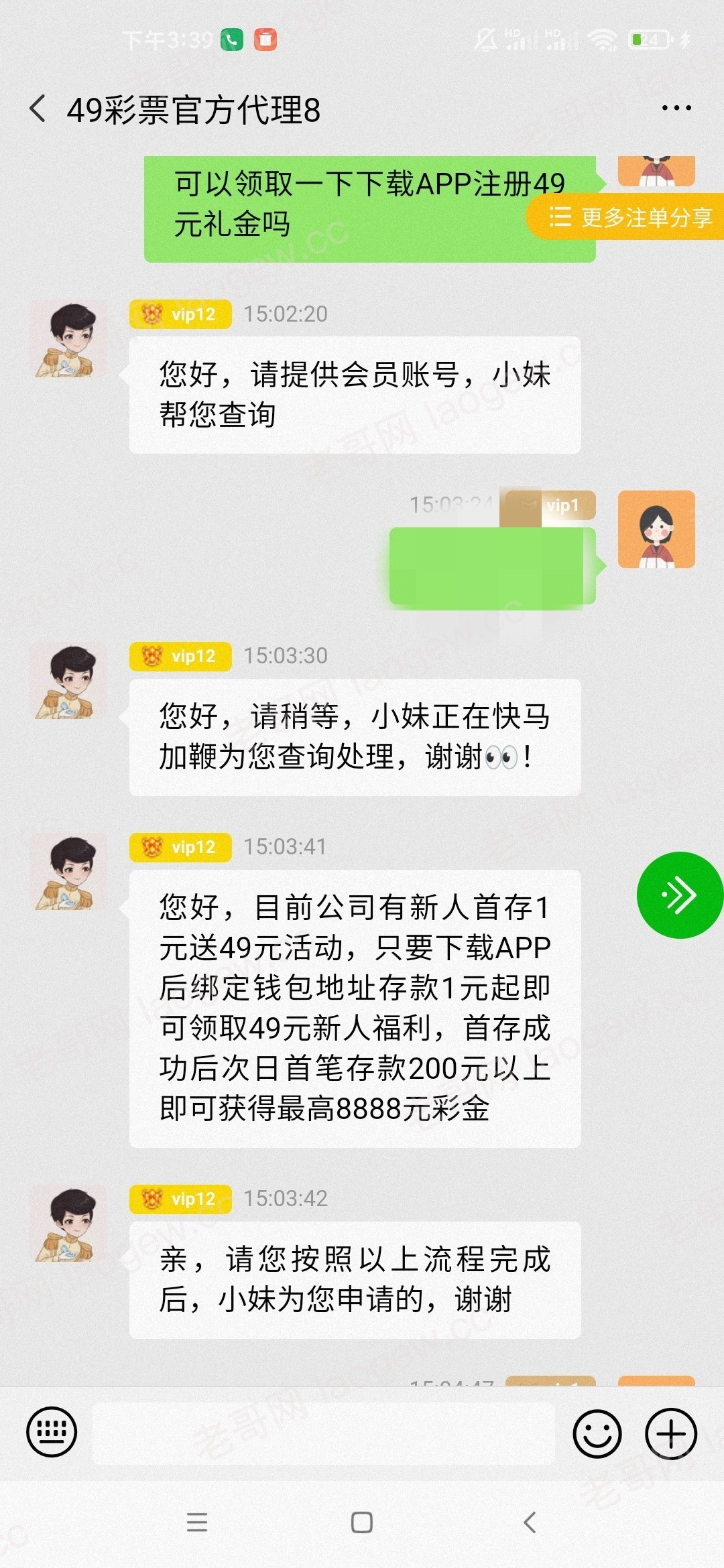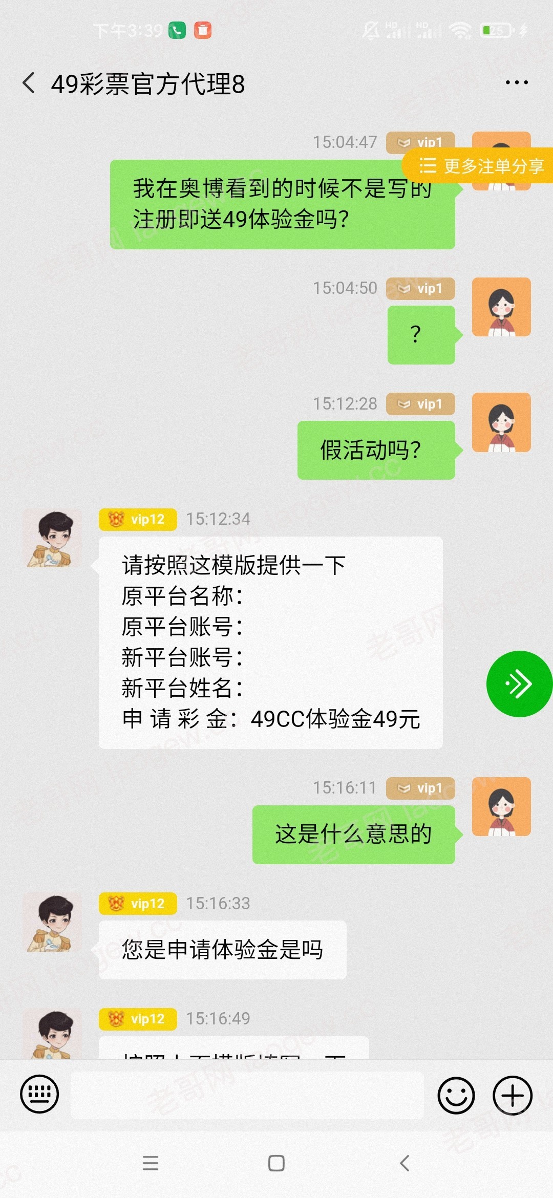 新回归的福彩新系列,和之前的4900彩票不是一个。注册绑定后找聊天室通讯录里的官方代理(找客服没用)。我是在福彩系其它平台看到的,有这个注册送活动,去问代理先是让我首冲1+给送,说了两句就发了让我提供原平台我提供了港澳(不确定是不是要提供福彩系平台)填完之后就给送了 。然后仔细看平台活动第一个发现确实有这个活动
