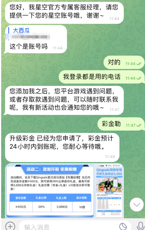 半岛有号的升级星空可以领彩金自己找客服,