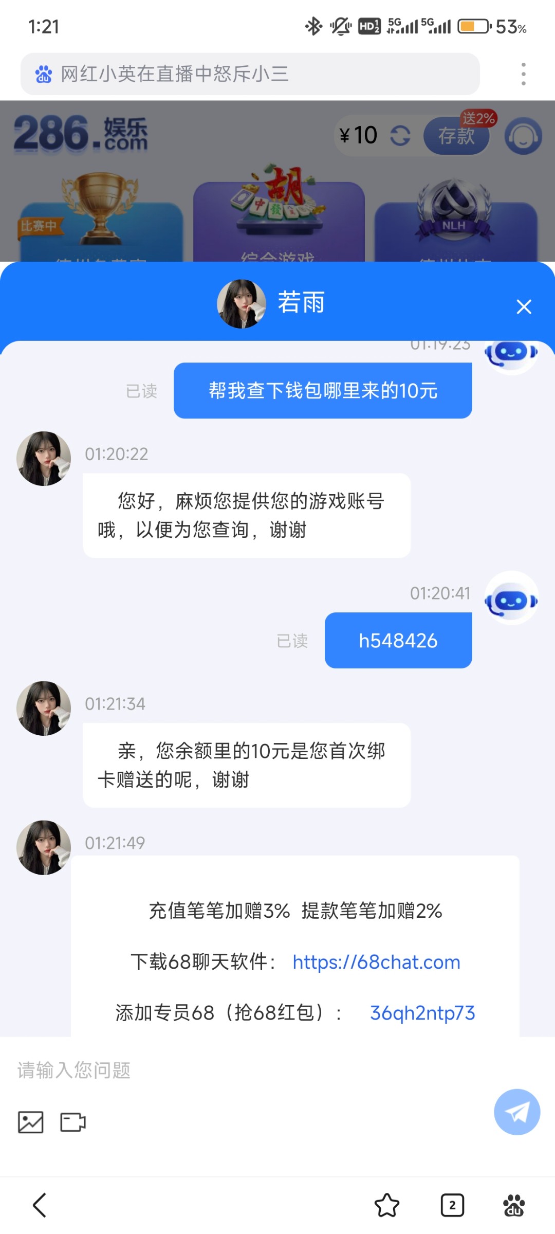 老哥们我是注册52天 今天才登陆看见有10 有就有没有也别中储我