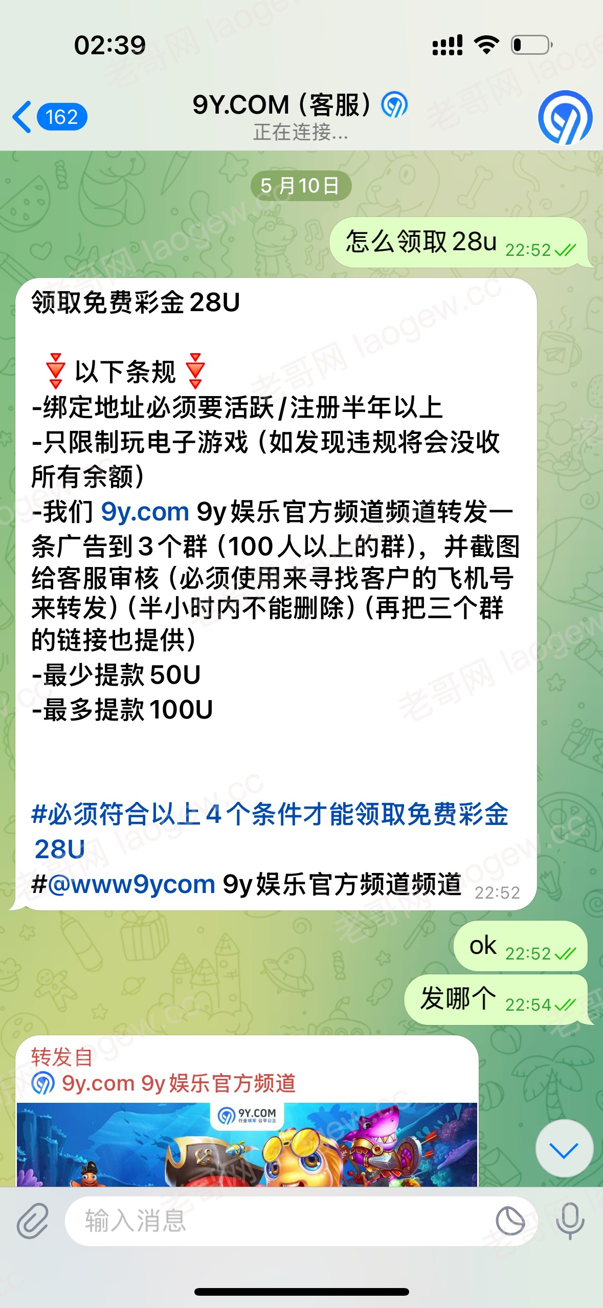转发三个群送28u 12倍流水 最低50 最高100