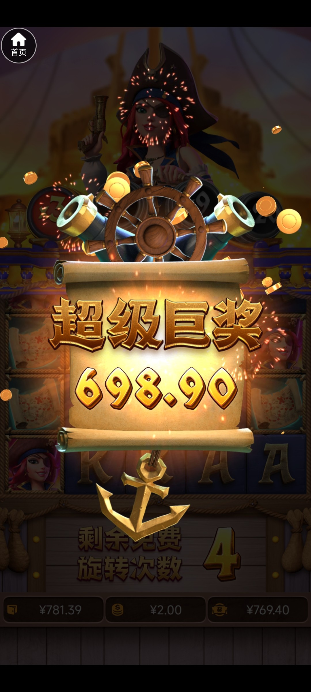 感谢 吃上了 船长1块胡60 然后 80去女王 2块一拉 最后10块免中免爆了