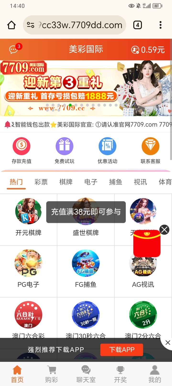红包不用充值每天都可以领 老哥们可以去签到几天在打 我是每天领完就打没 出款自测没出过 地址 7709.com