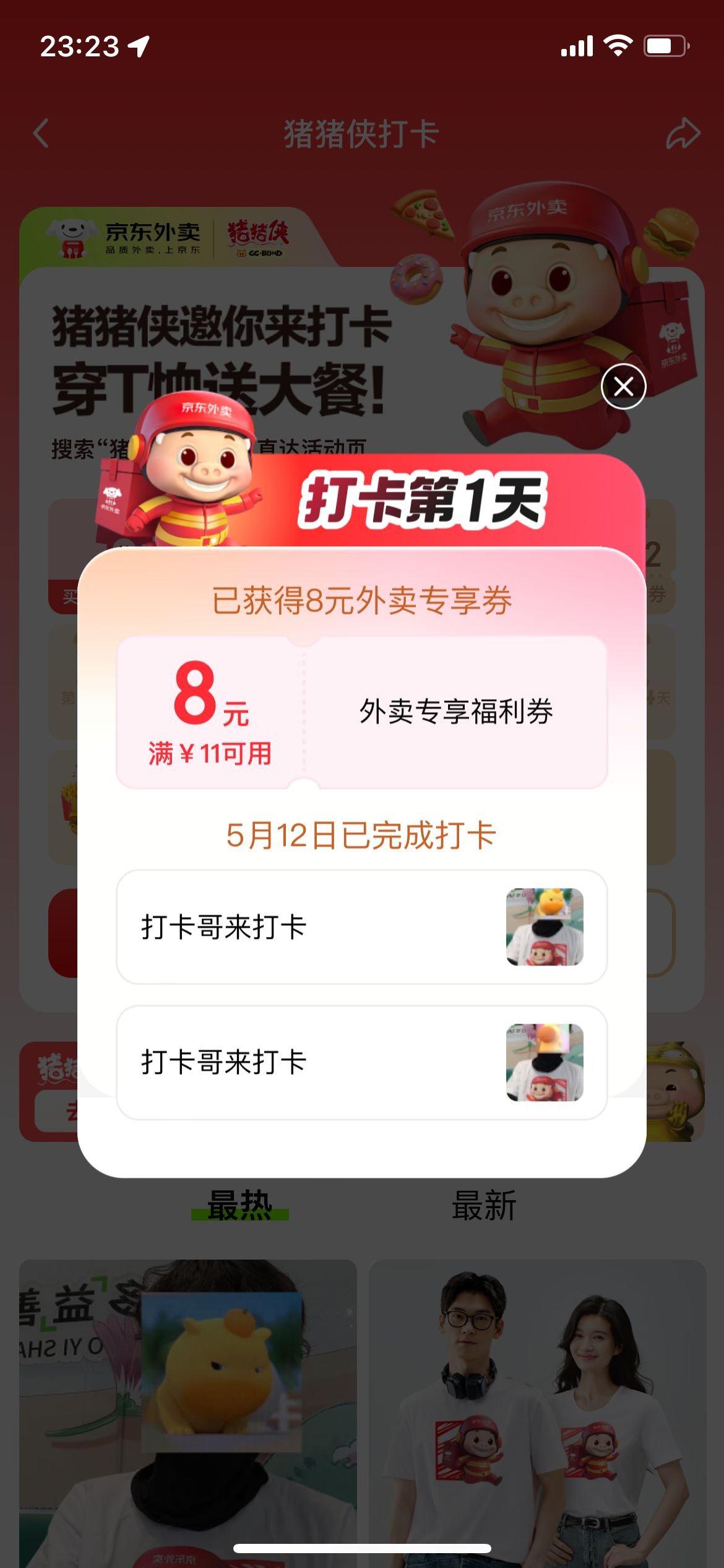 京东外卖横幅猪猪侠打卡 下面一堆图 图上➕个表情包随便过