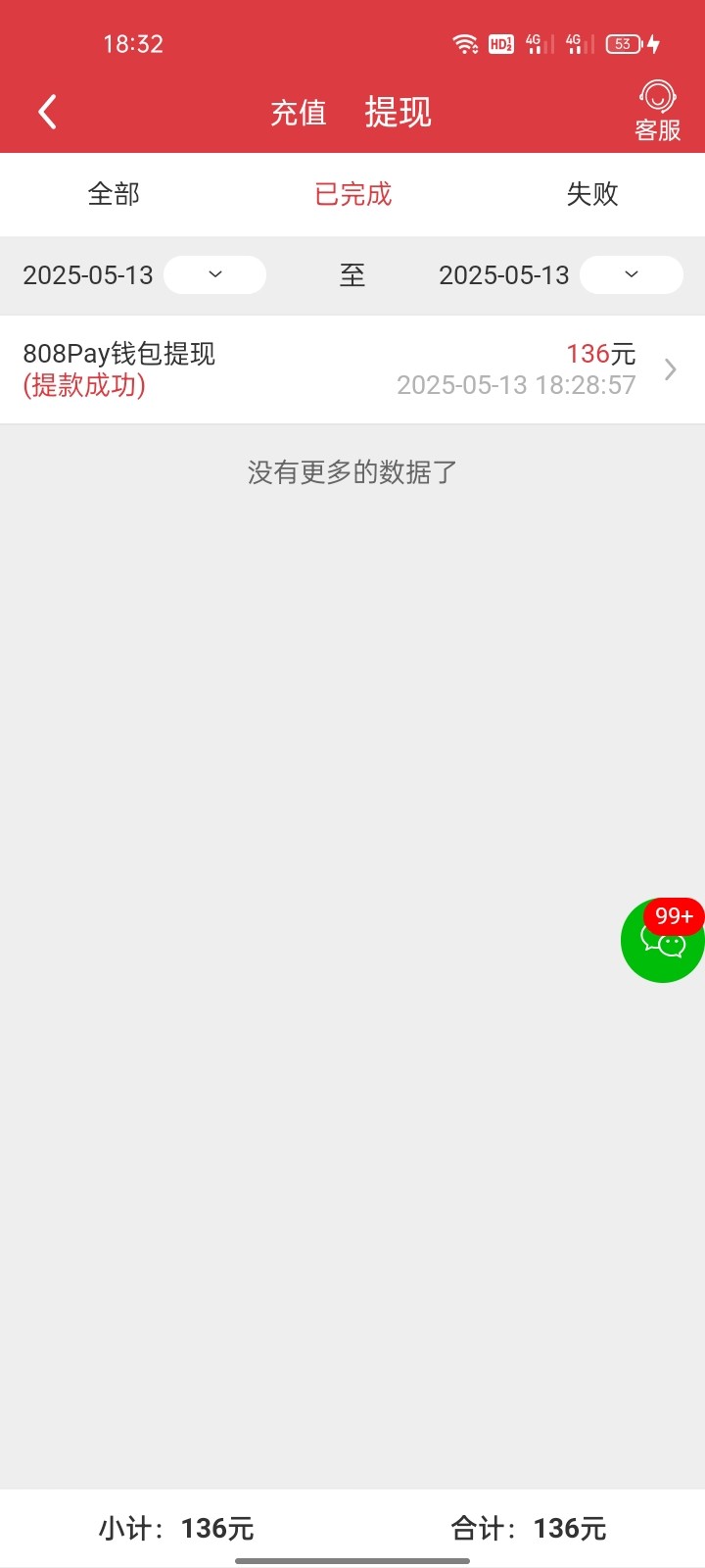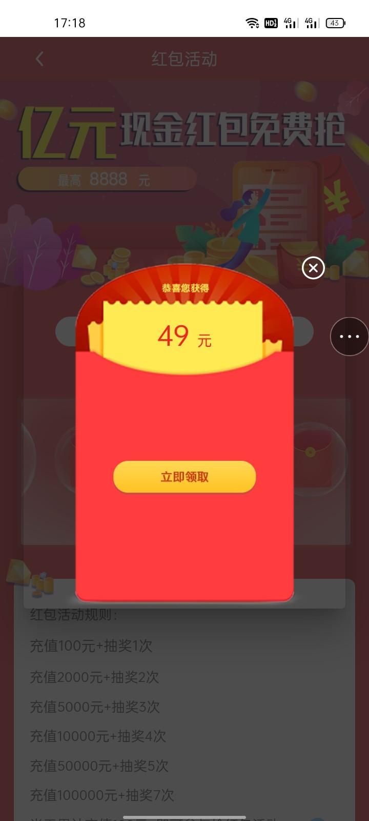 昨天充值50没付款成功,也给到账了,然后领了49没打出,刚刚抽红包领到了49打到740提现成功
