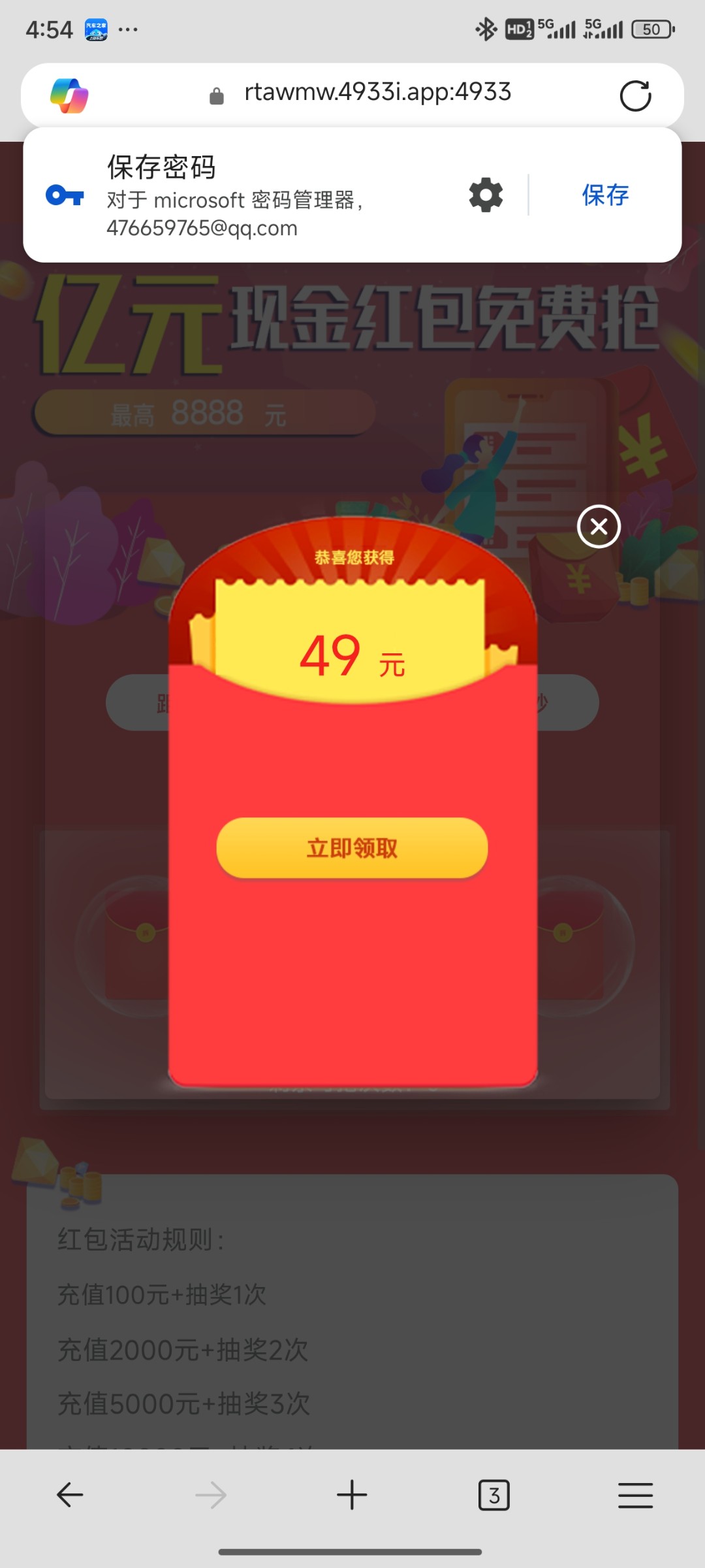 我前天注册的,说要存款才送49,然后今天群里面老哥说那个红包点开送49有号的去看一下现在注册就要等明天才会有次数 49.cc