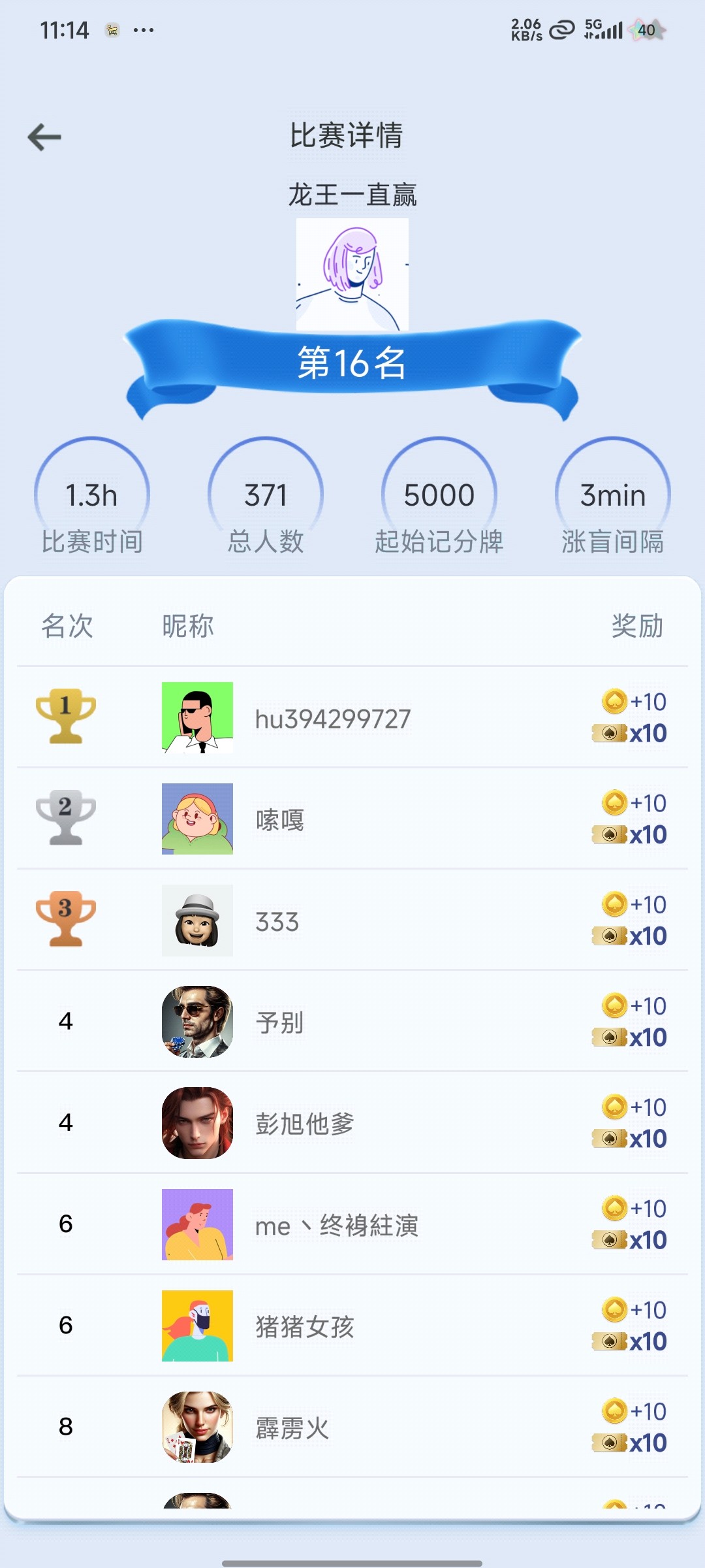 现在免费比赛每个小时有两场,只要进入前50都有奖励奖励比之前提升了一点,有兴趣可以去看看,拿到奖励的可以去那个0.1和0.2的场次慢慢刷,好多都是偷鸡的,我自己五六个号就打出了一个号400