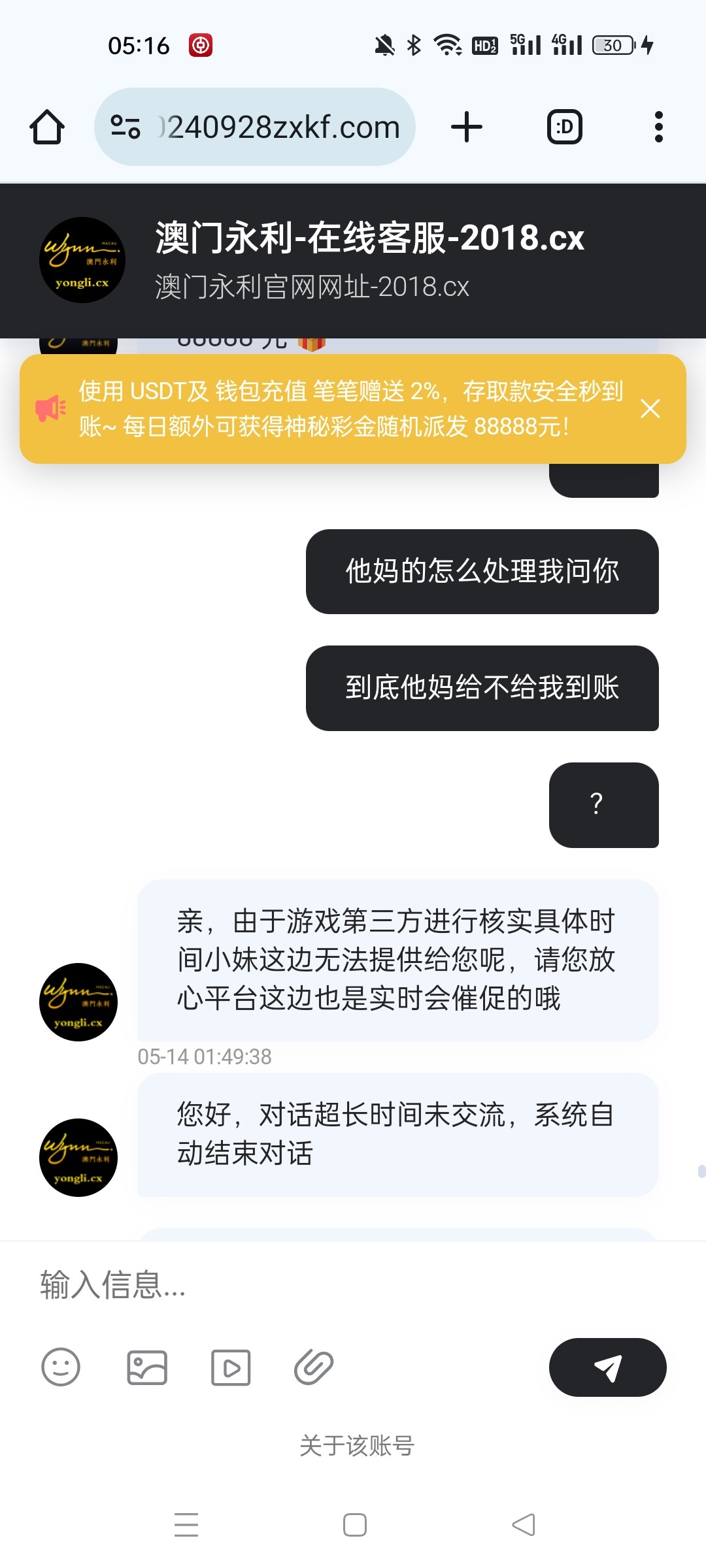 畜生永利无限审核 10号提现到现在一直没审核好 他妈的二百提两千就黑 我都玩三四年了 之前也有一次一百多上4k 也是审核第二天到账了 还有连续几次一百多上一千 也是审核完到账 这一次彻底黑了 他妈的提三四天