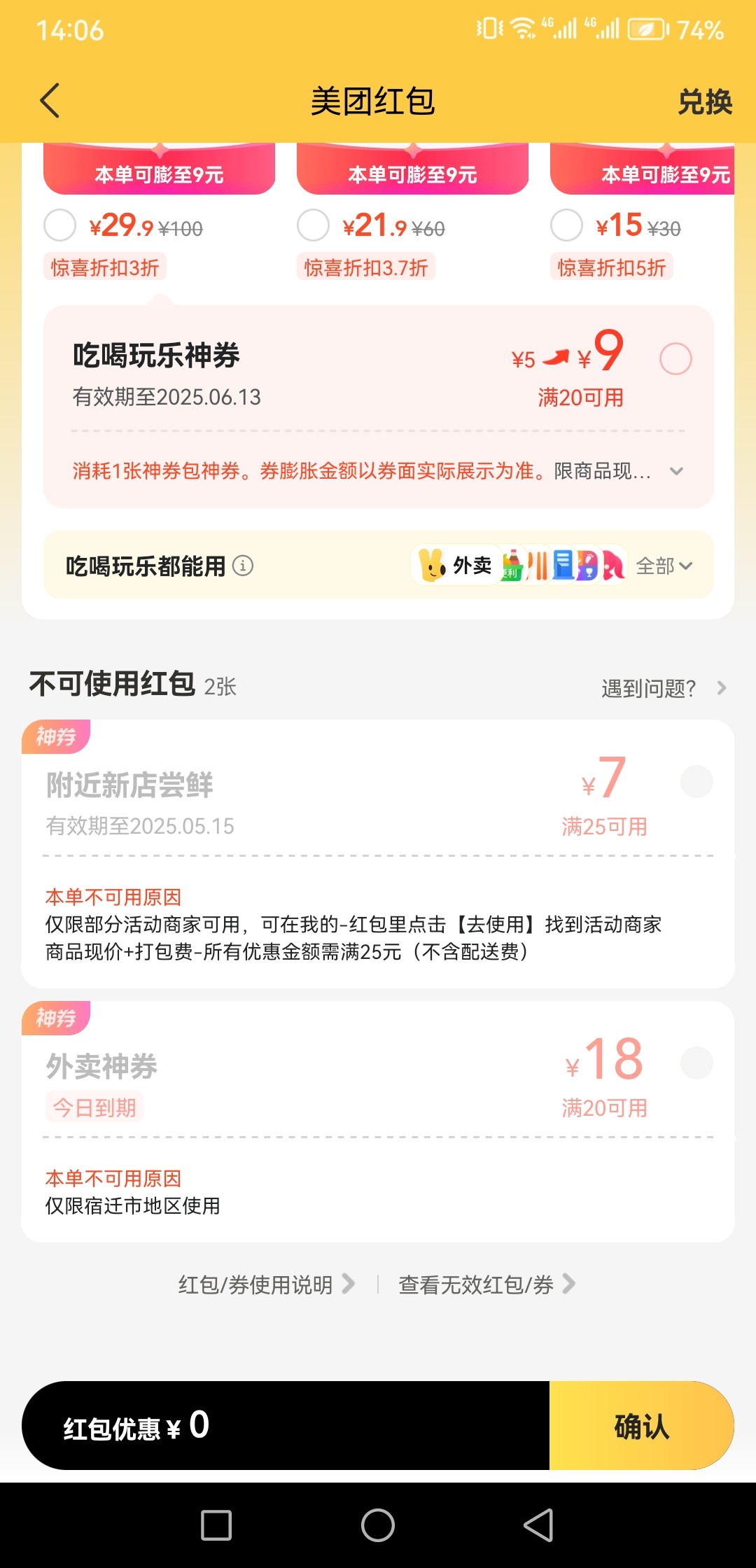 我是抖音刷到的教程,不用改定位,直接关闭定位手动选,撸了两张,还好我点了预订单用了,不然现在的话那个券只能限制宿迁使用