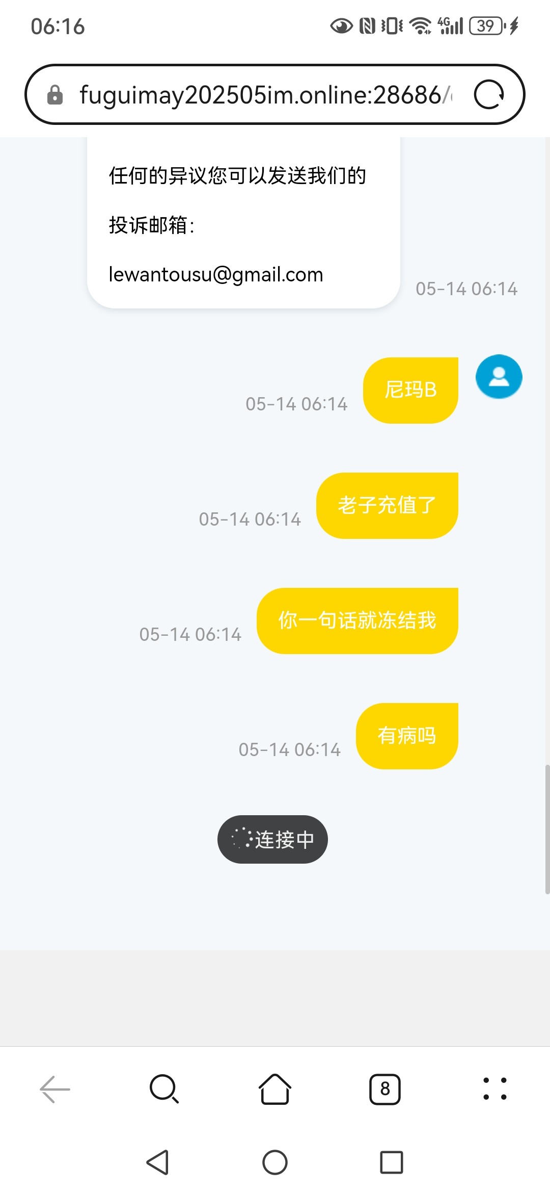 求求你们不要再发乐玩了,充值73,打到230提款冻结账号,说违规。根本没有申请活动。提款就黑,气到我吐血