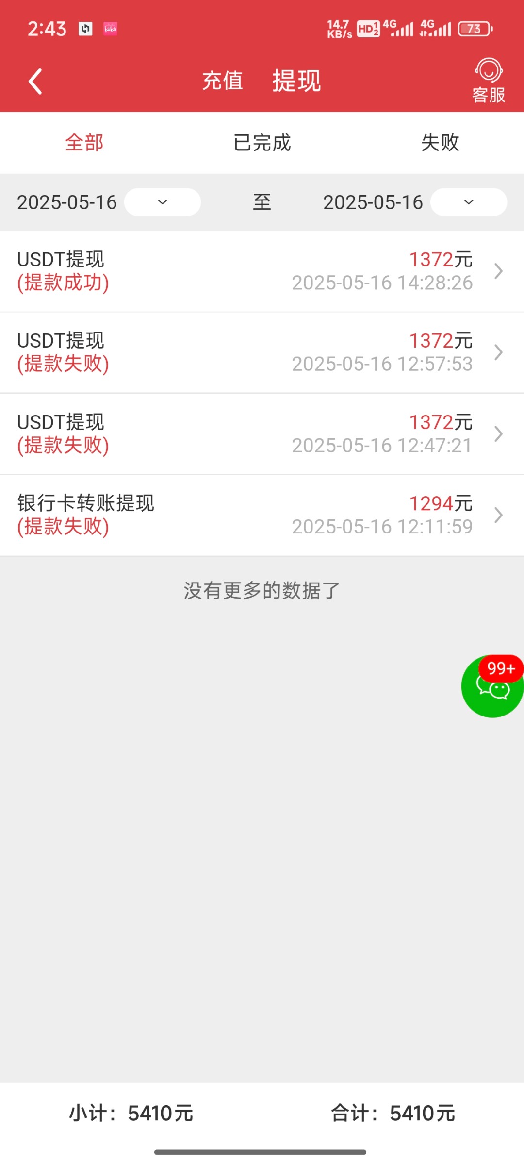 用u充值一笔提到账