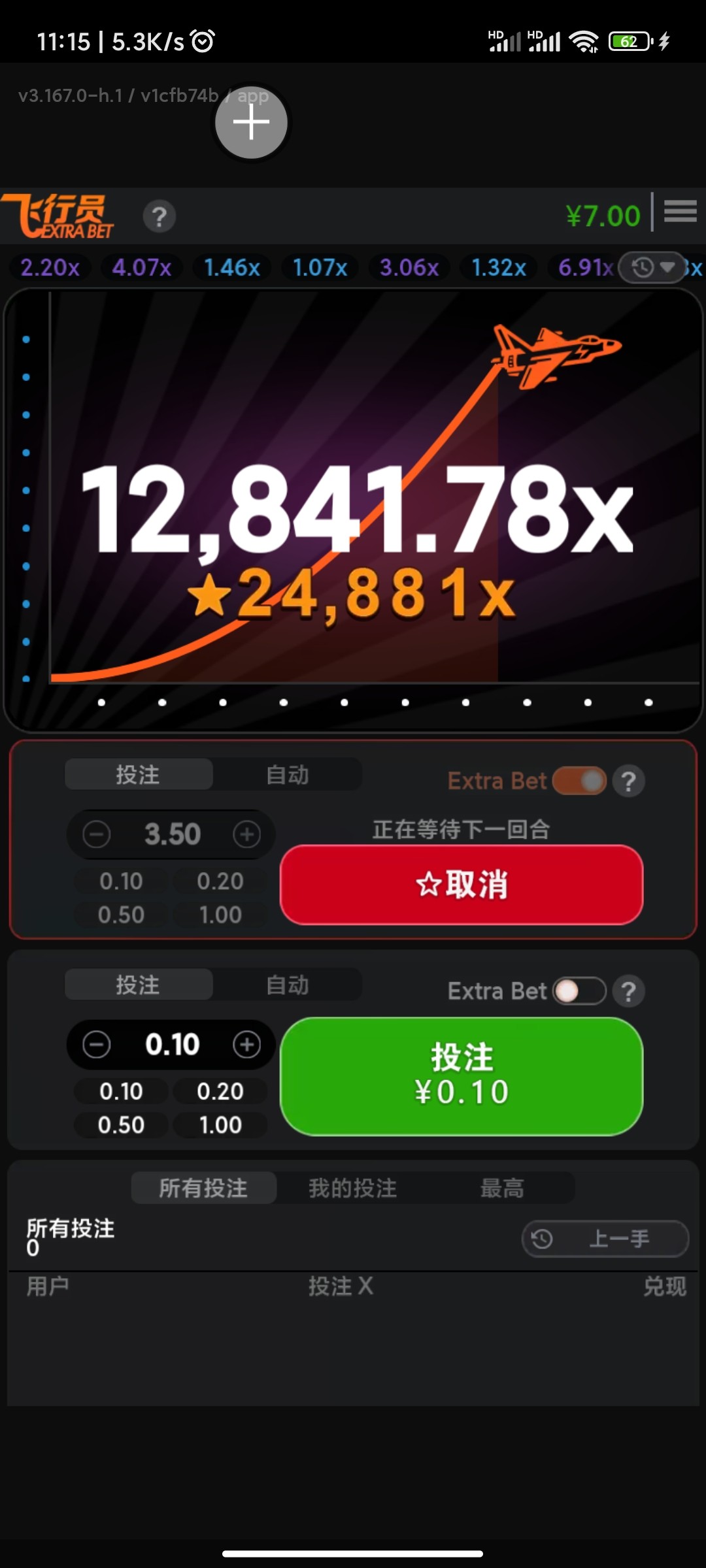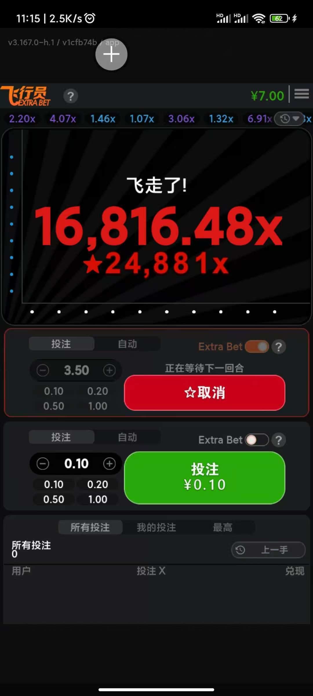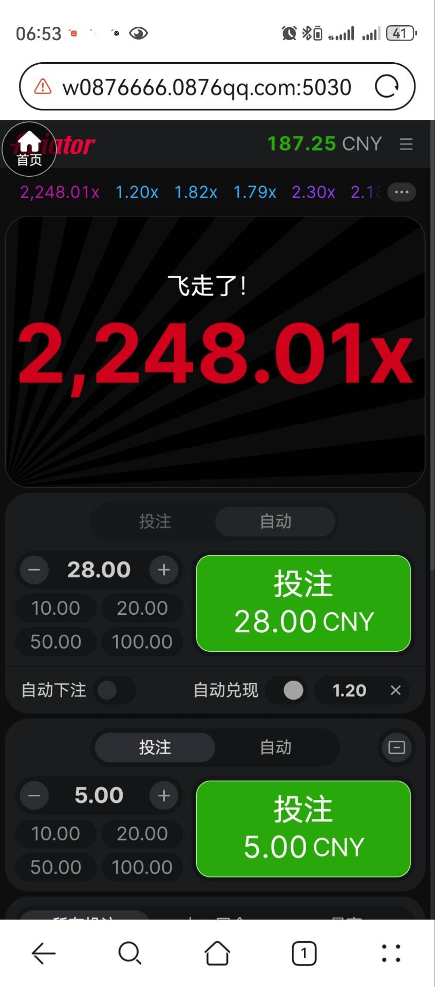这个游戏真让我觉得恶心又可笑,抢了个红包进去刚好飞了,我没来得及压上,飞了16816倍x24881我要是早一点进去压上别说打满,飞一万倍在乘也有几十个了,可惜可惜真可惜,没这个命啊