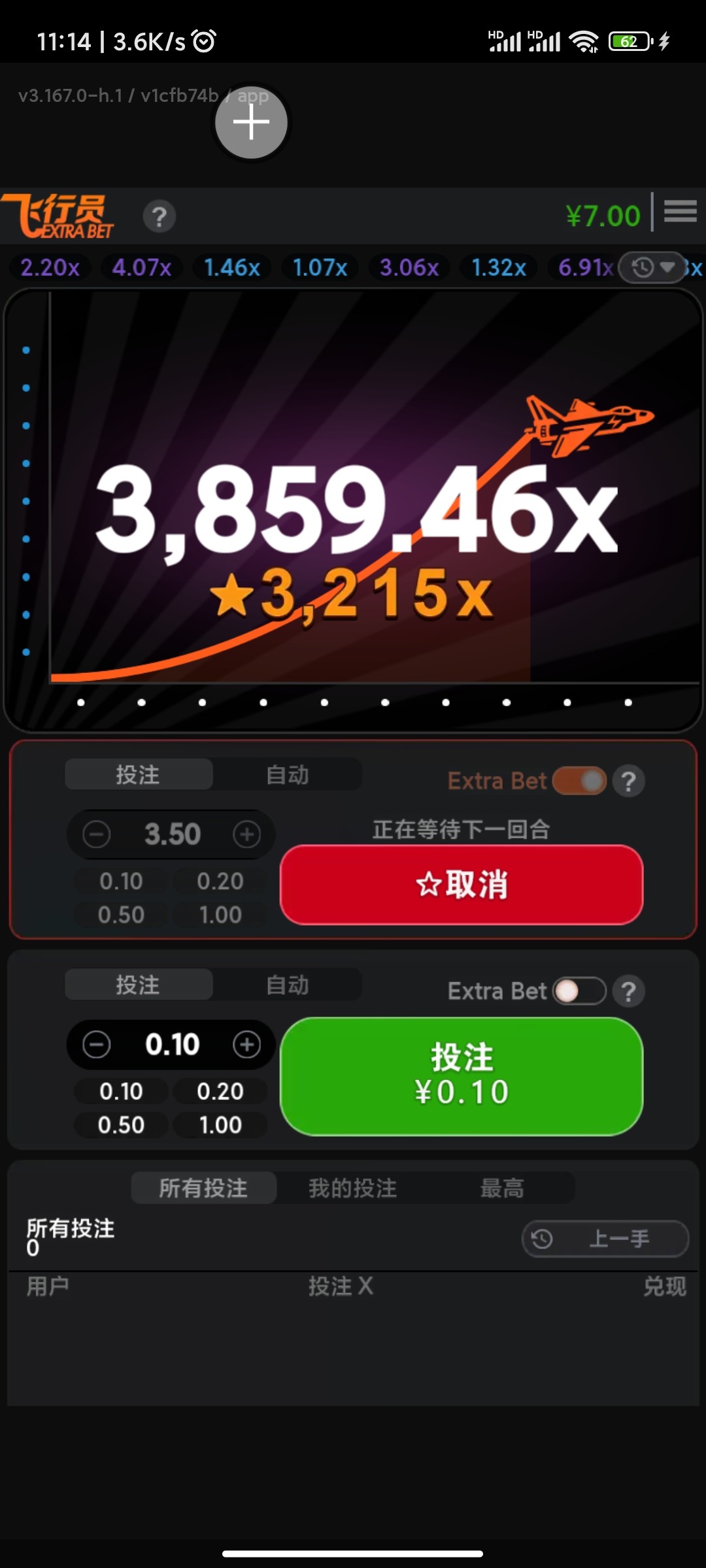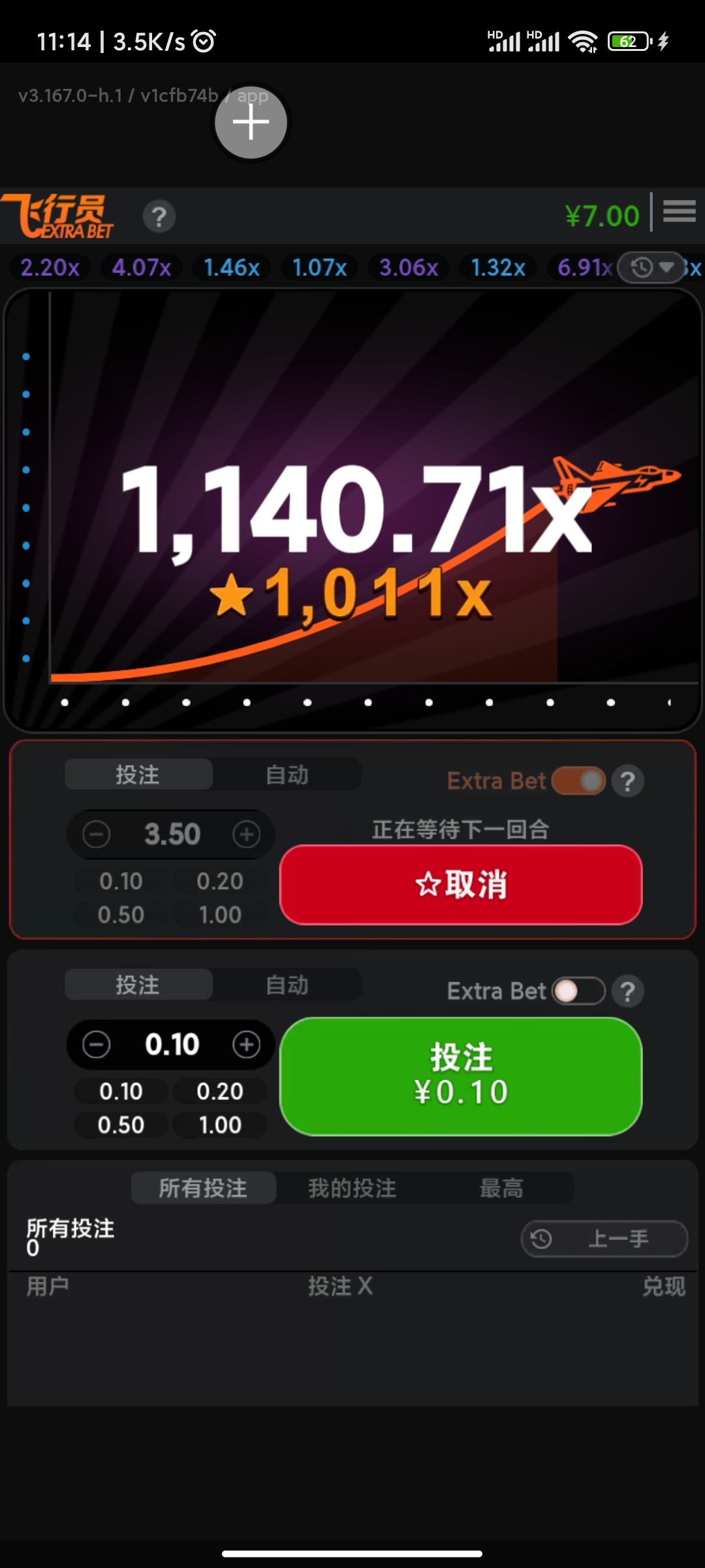 没中就是没中!一飞冲天插肩而过还少吗!下注退出不飞,看着飞10倍就点了他300倍!
