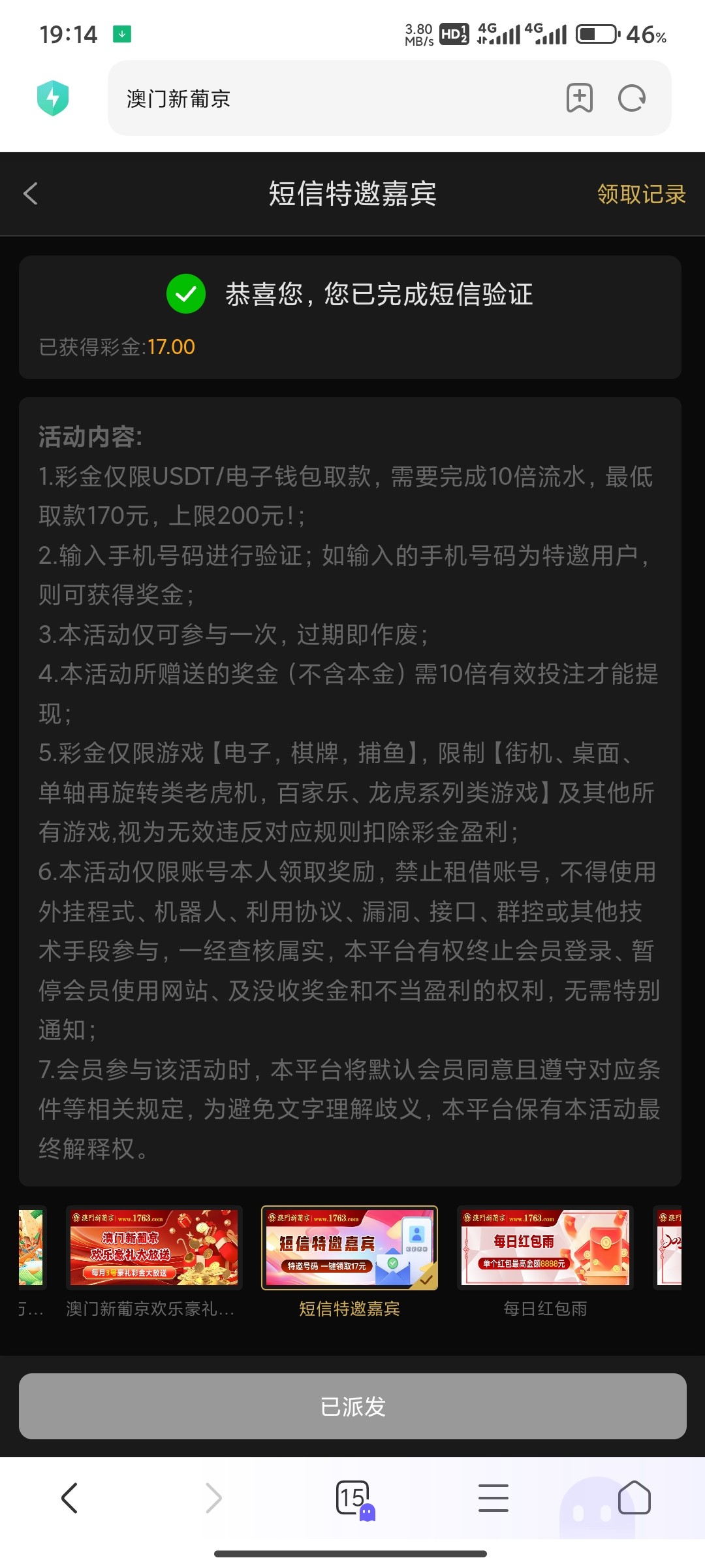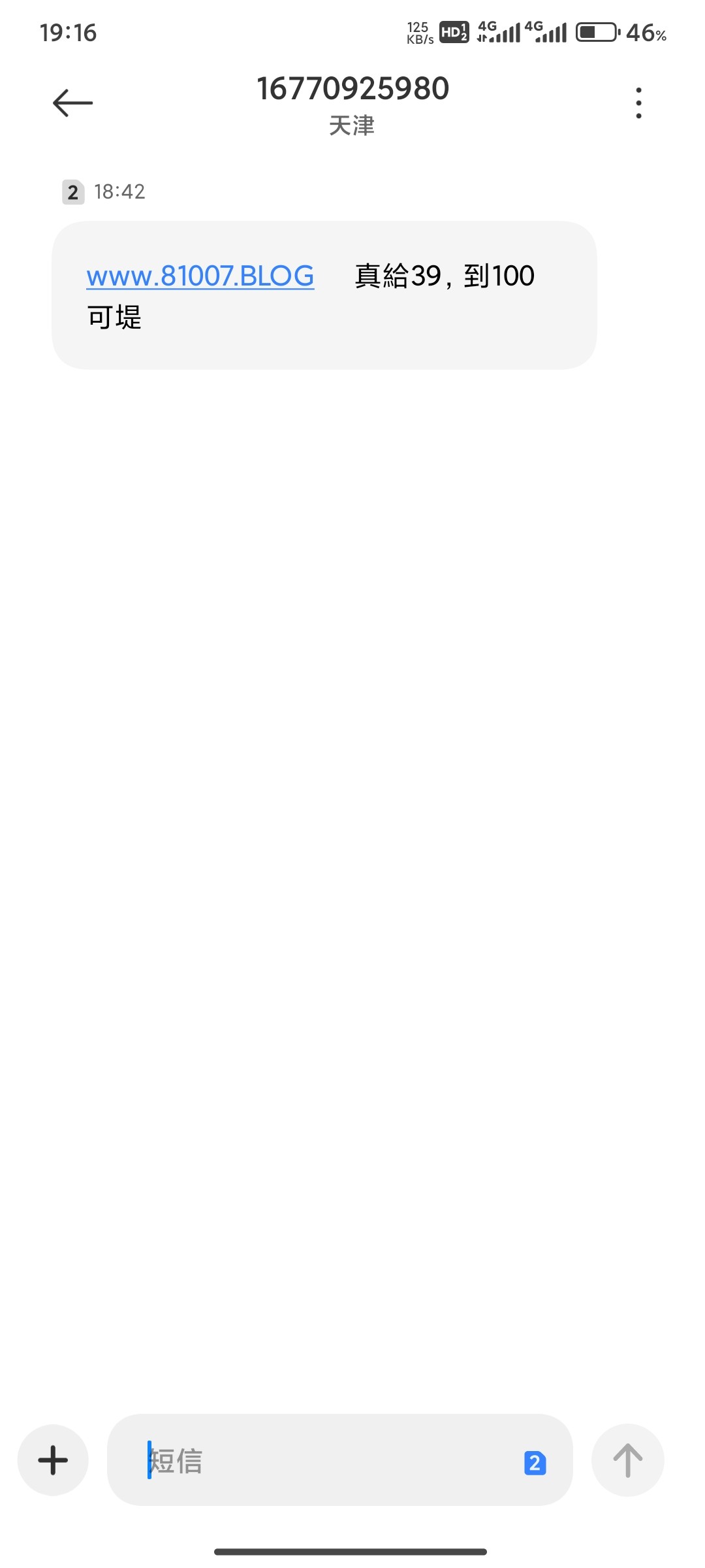 收到短信,老哥们去碰碰吧。出款未知 短信地址 www.81007.blog