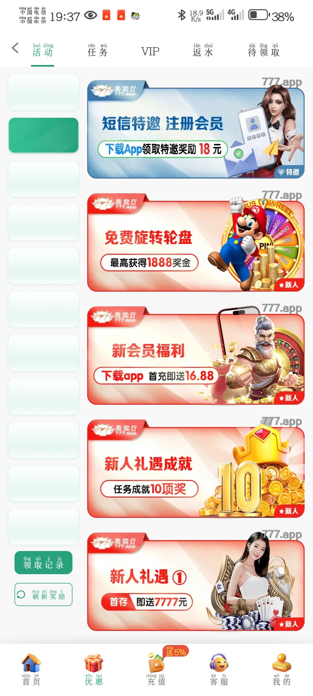 没收到短信碰到了,参加过首存或者以小博大的可以去试试,美充值过的不要去了,777.app