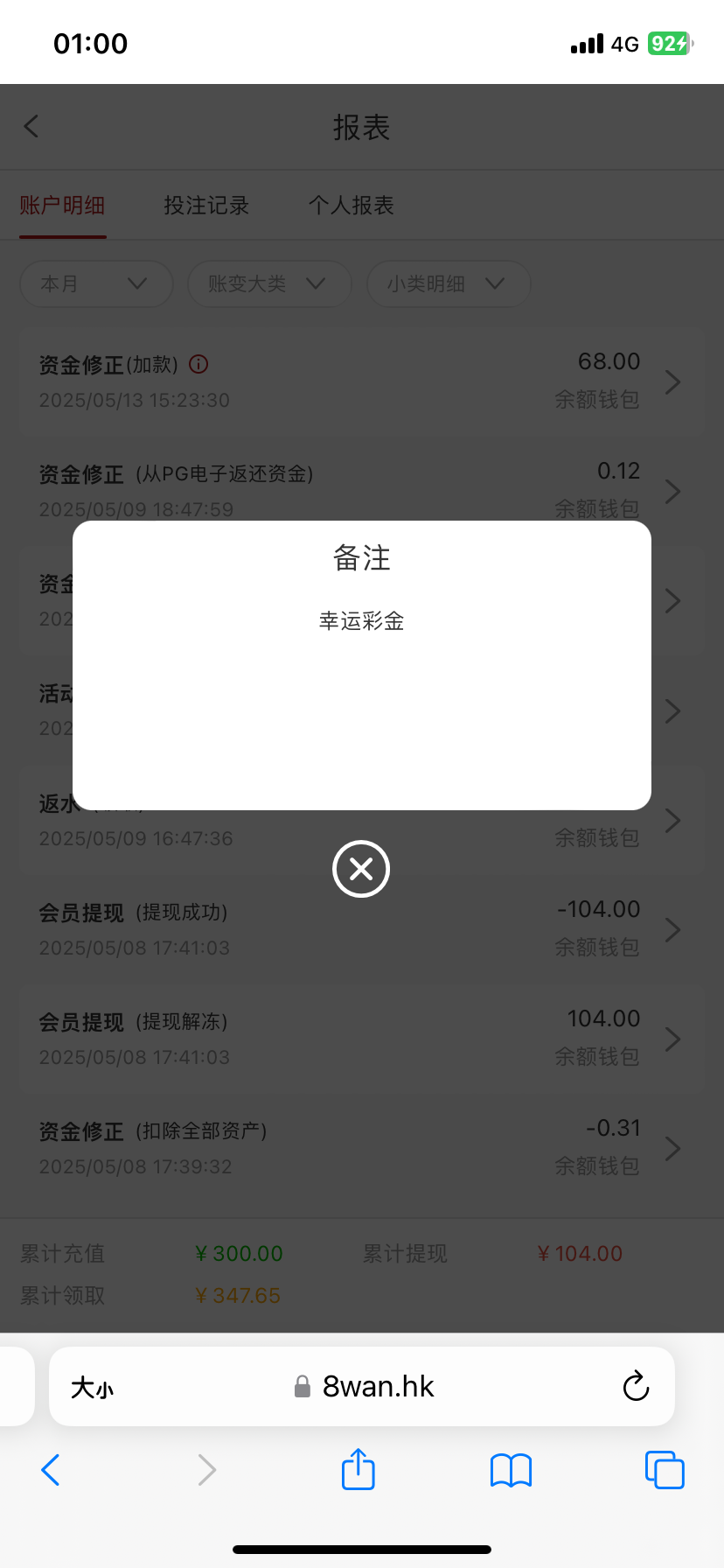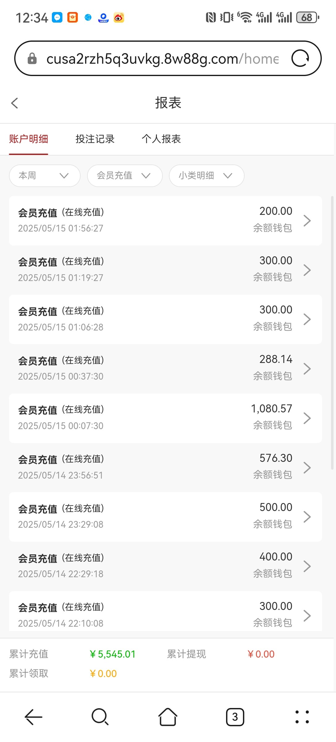 累计充值300多,累计领取300多,666
