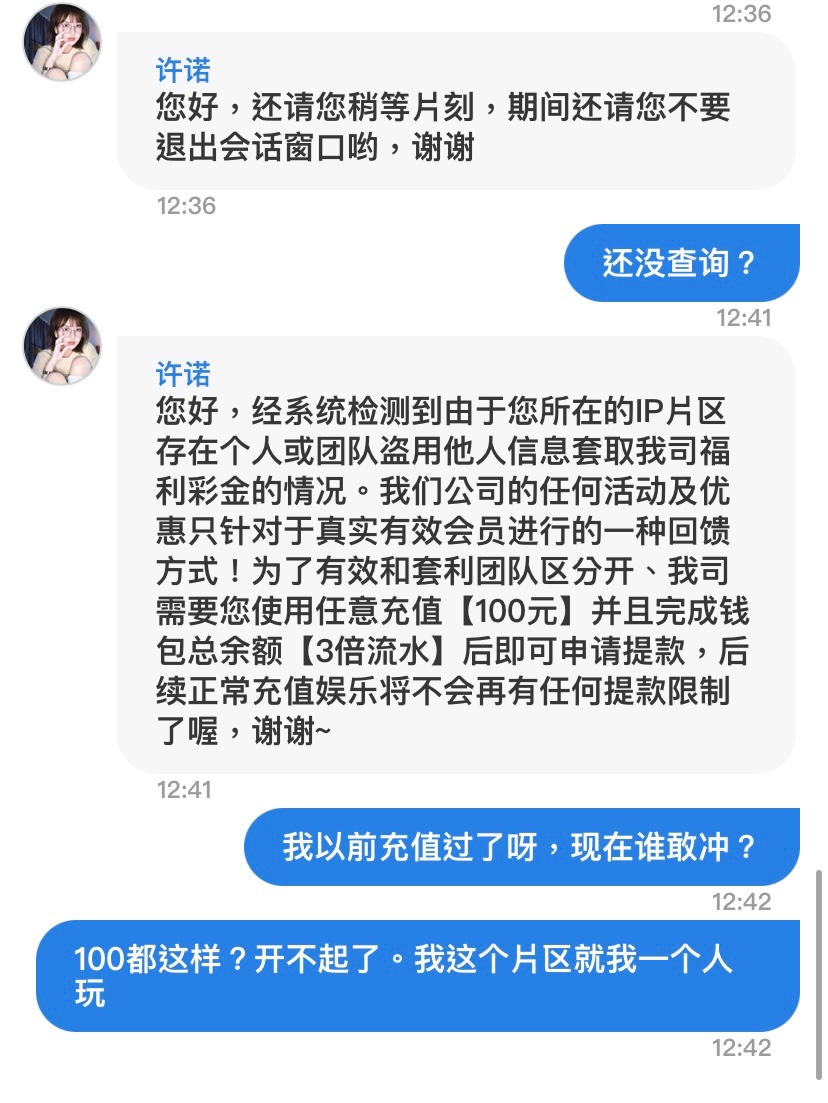 提款黑了 打到100提了不给出 说要充值