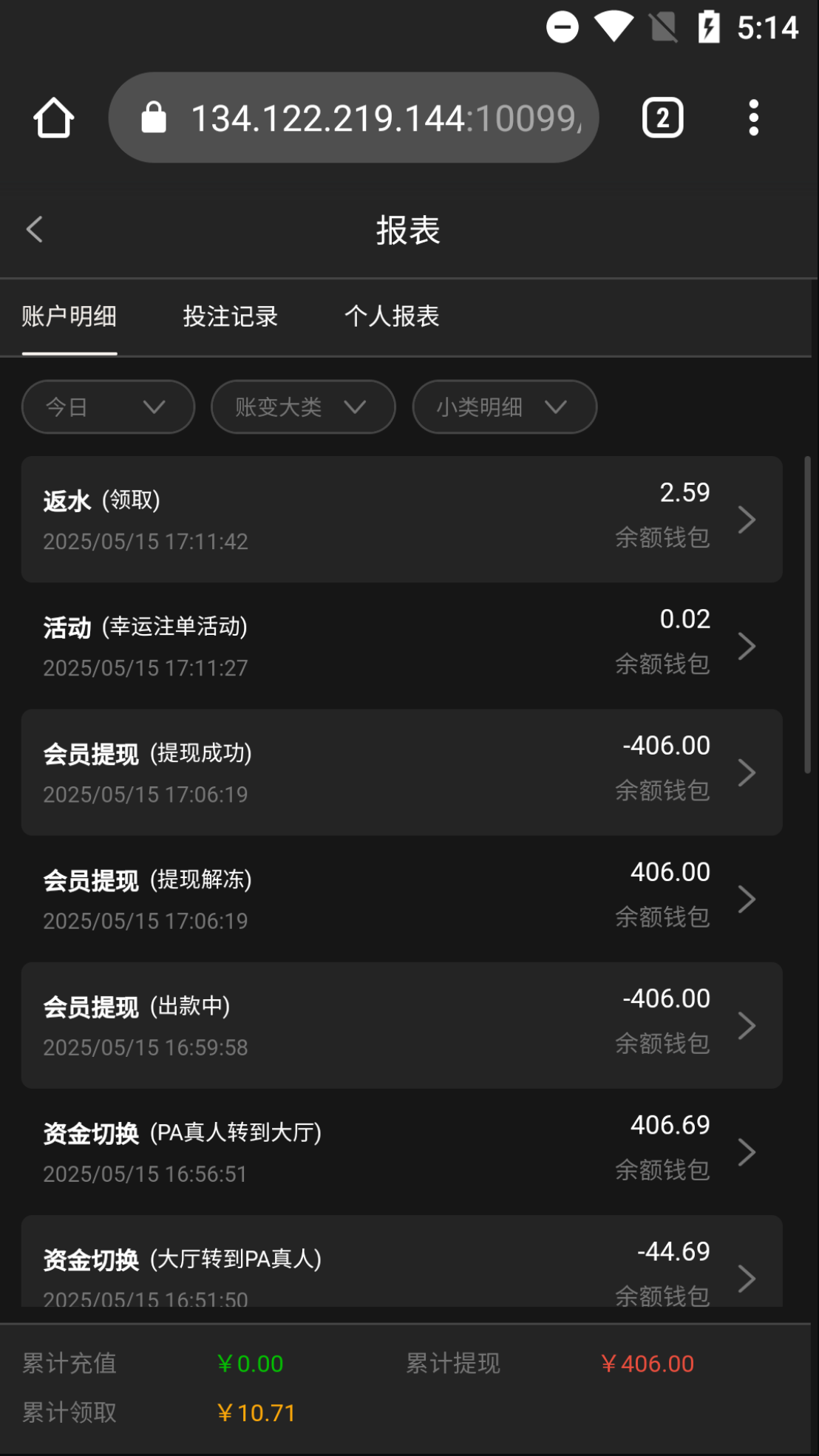 这个台已经废了,之前的名声败光,看这个月黑了多少老哥,有彩金都懒得打,重点是别给sfz。
