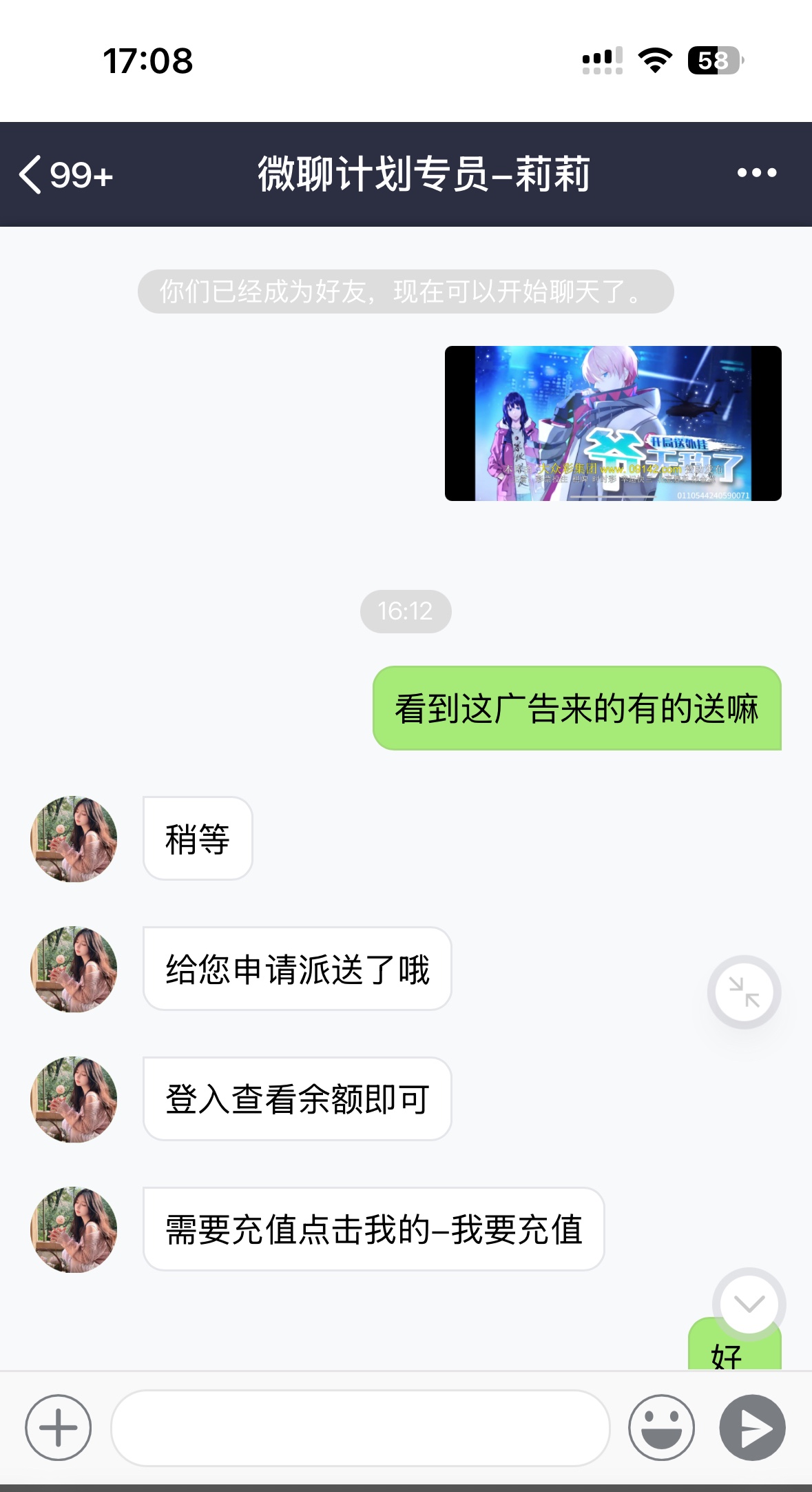 网址09142.com 我是在免费看剧软件上看到的广告,一注册完啥也没绑定直接送了找微聊好友申请,各位老哥麻烦助力我拿个有效贴