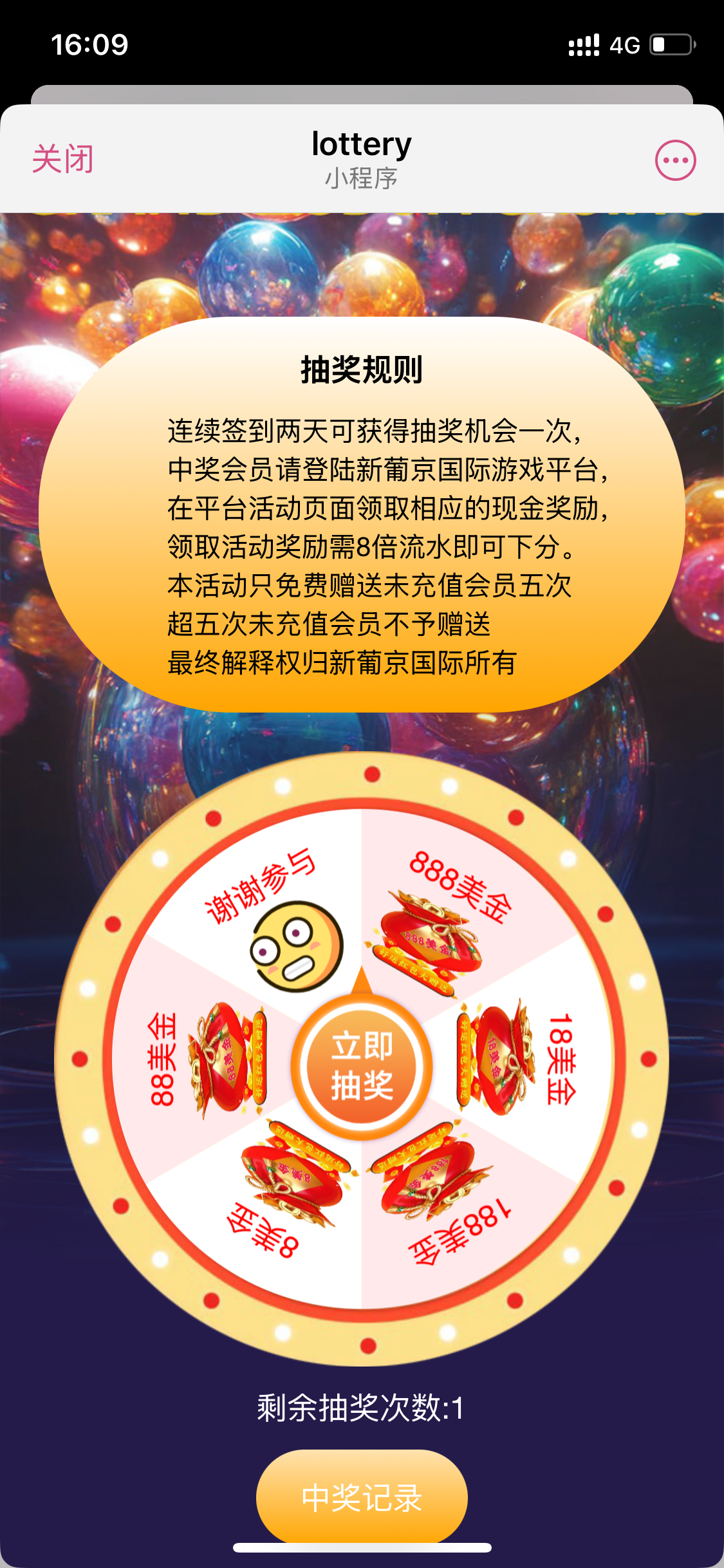 有飞机的可以去签到抽转盘彩金,我抽中8U没打出来,出款自测,非必中!!!!骂人的死妈