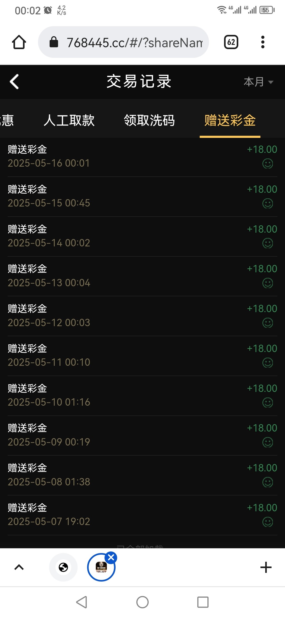送十天十八彩金 我没打出来 自己自测网址:768.app 电话特邀啊 自己碰瓷