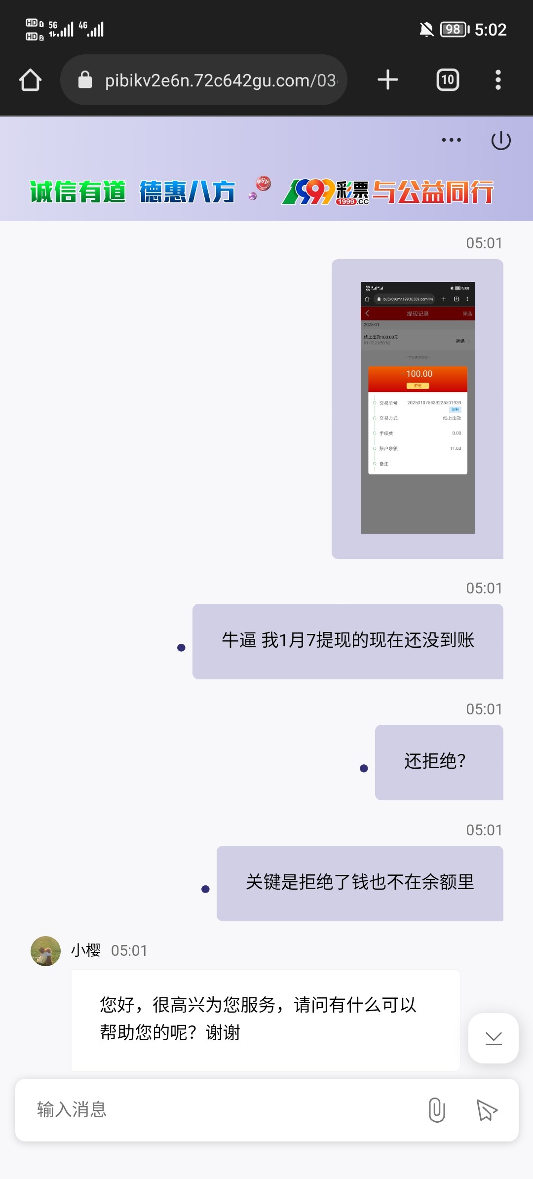 最近挂壁了 玩什么什么不爆 然后想起来之前一月份时玩过一个彩票台 充了30提100一直没到 想着提出来先渡过一下 结果客服直接装死了