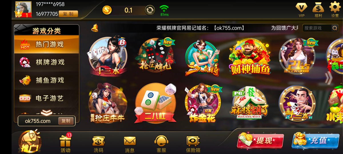 【荣耀棋牌】注册送28-已结束