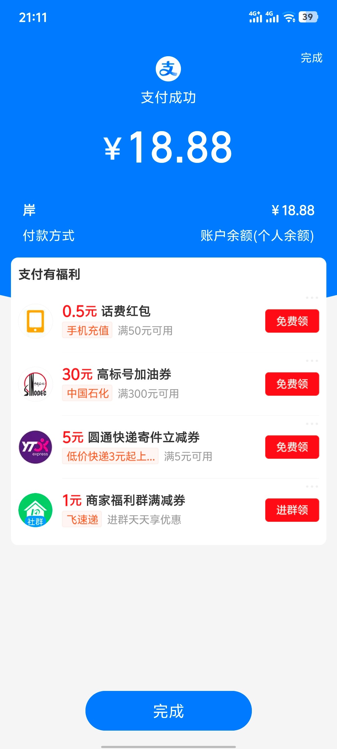 留收款码给你团猪脚饭。