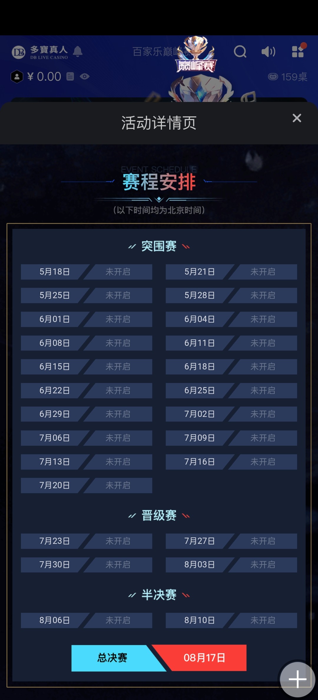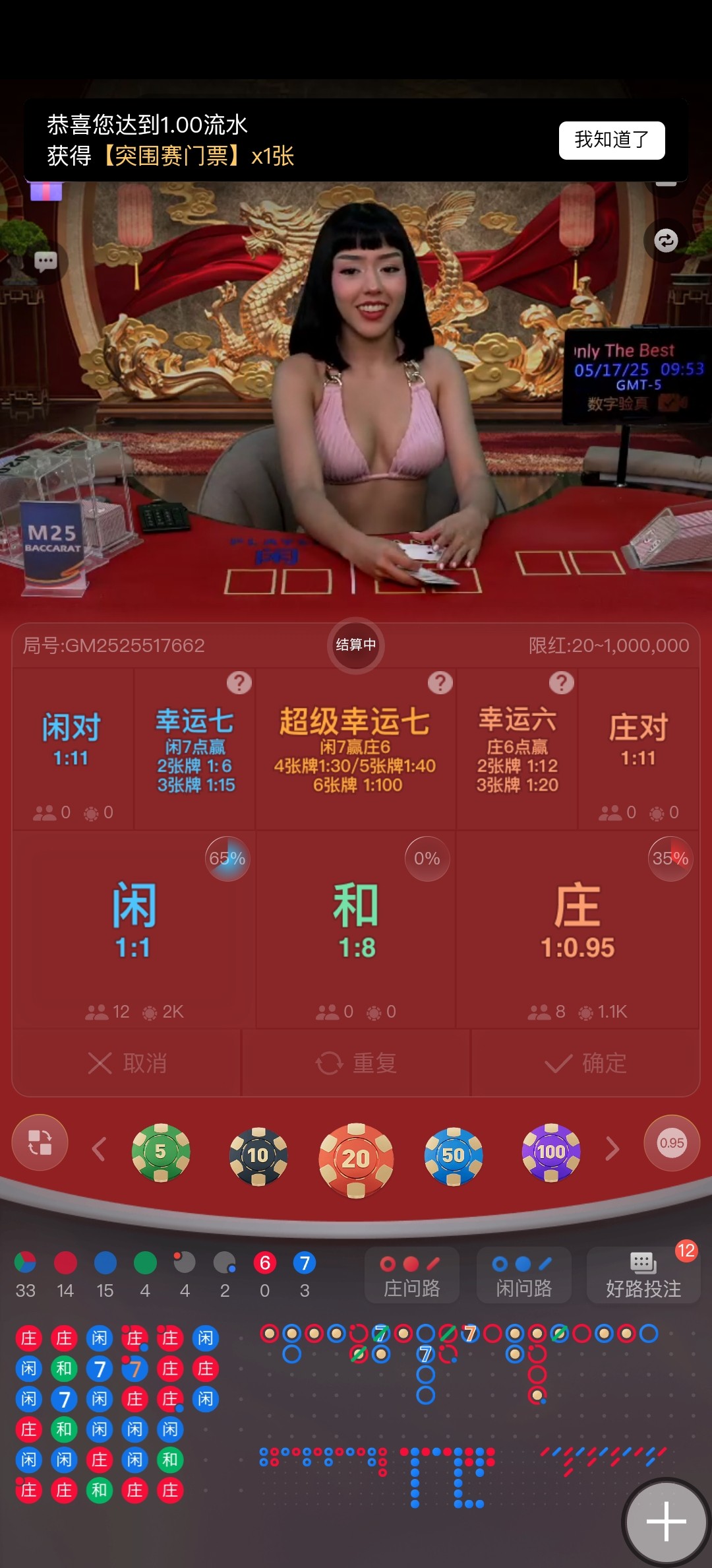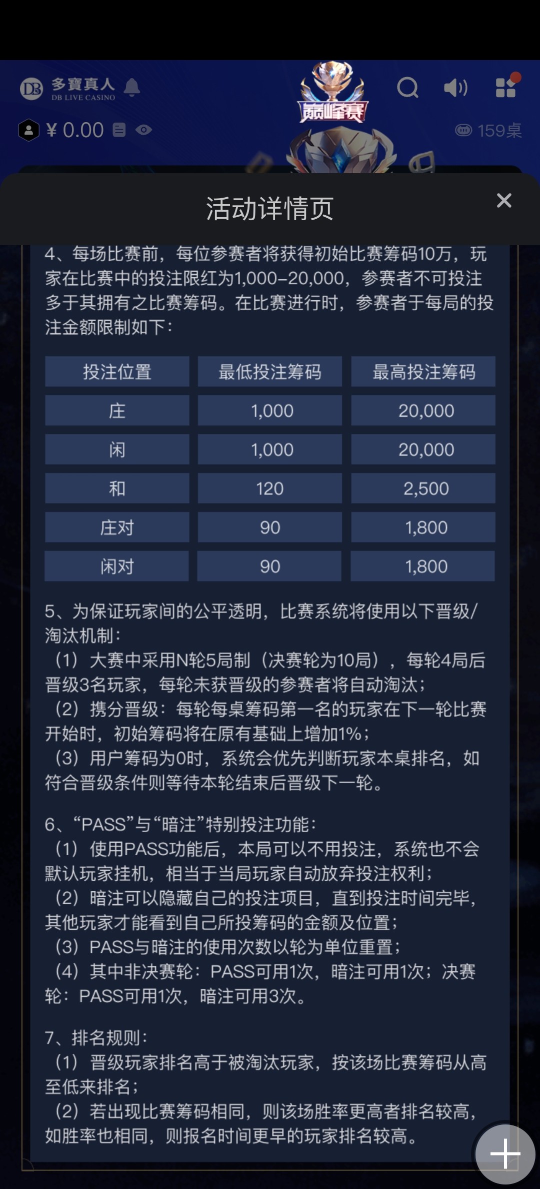 有喜欢打百家乐比赛的老哥去看看吧,DB厅,满1元流水获得突围赛门票,明天有比赛开启!祝老哥们都拿好名次!