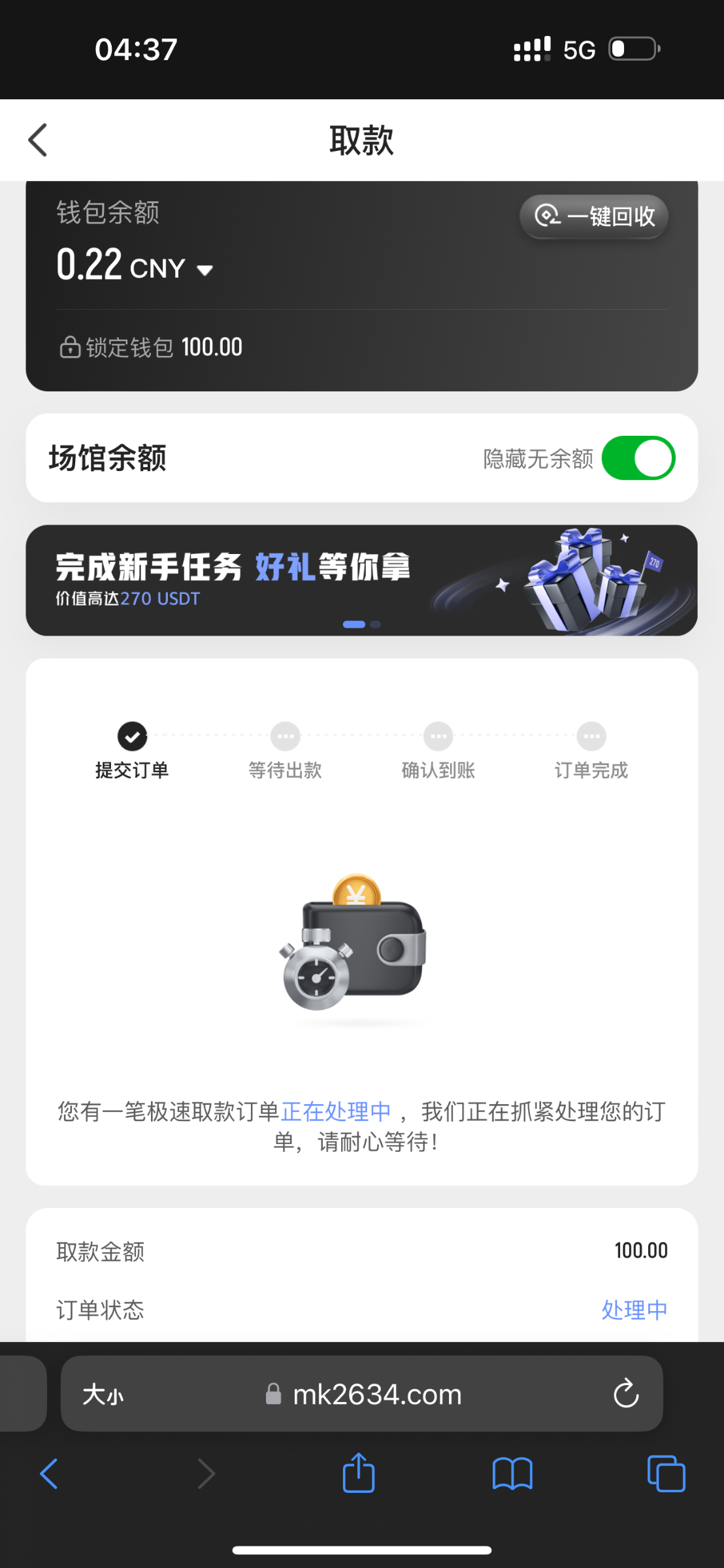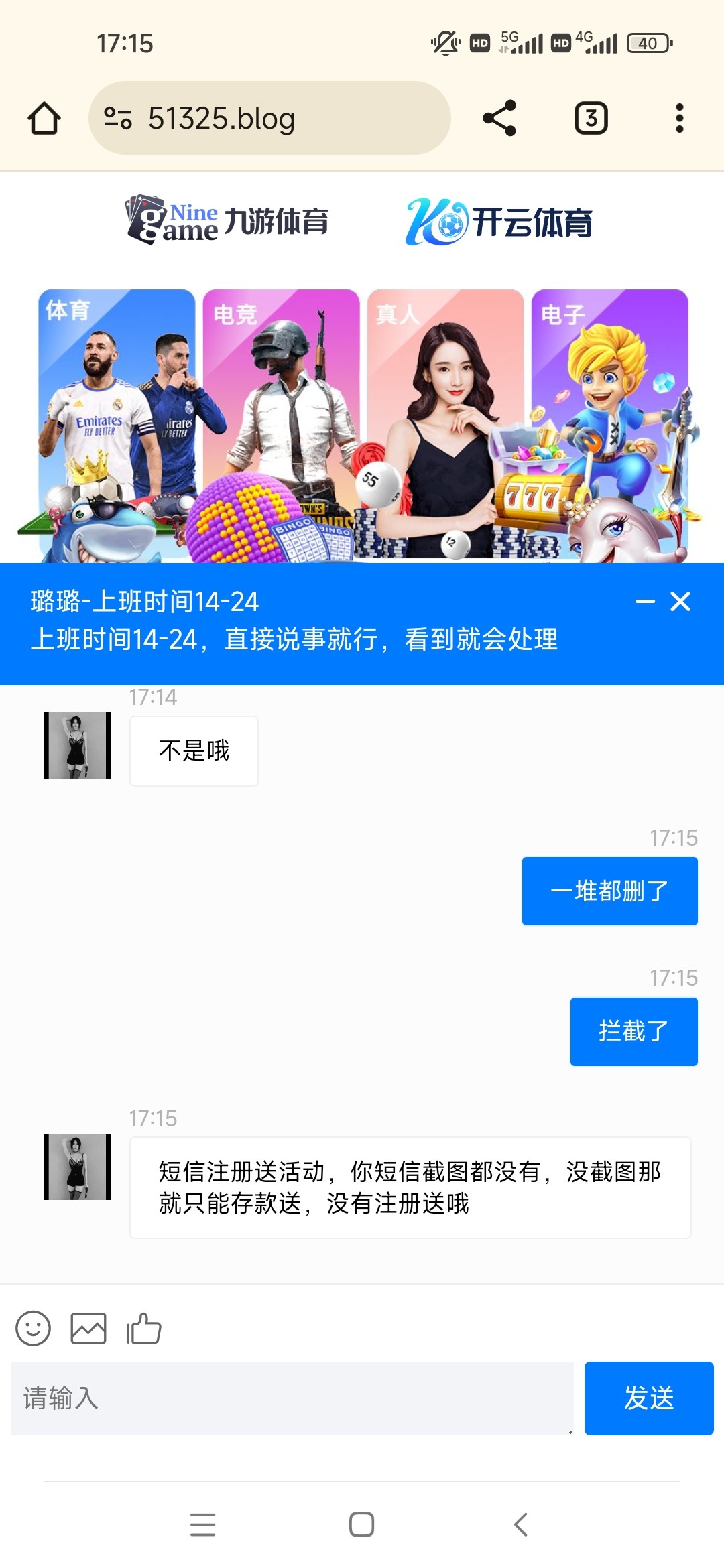 刚收到个短信。链接http://51325.blog 注册送100流程 注册账号绑定卡后,点击优惠-新人活动,领取8-28元体验金,流水达100找链接客服上分100,备注账号台子,下面六台都可以 开云。九游。mk。乐鱼。爱游戏。华体会 有手机号多的就去试试,我是都注册过了