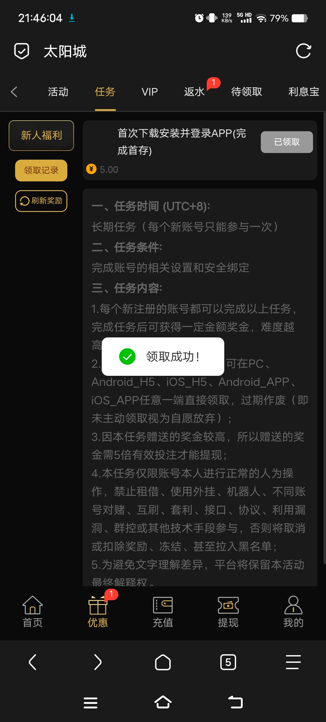 之前充值过的上吧,之前有人发过以小博大,任务那里有五块赌神彩金,5倍水,10块就可以提现 99996.com