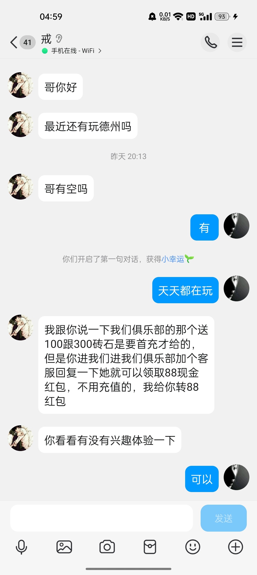 这次短信让我加q直接送啥都没要,首充送100能去不?