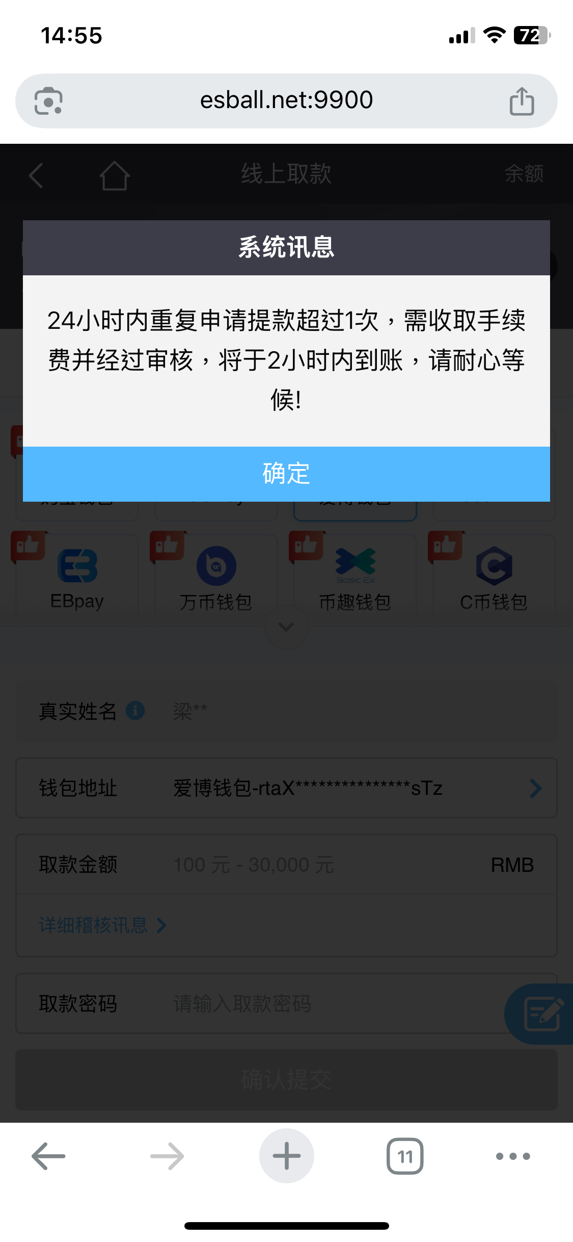 没见过这么恶心的平台第二次提款要100手续费,这么多台子这个是见过最恶心的!网站 esb515.com