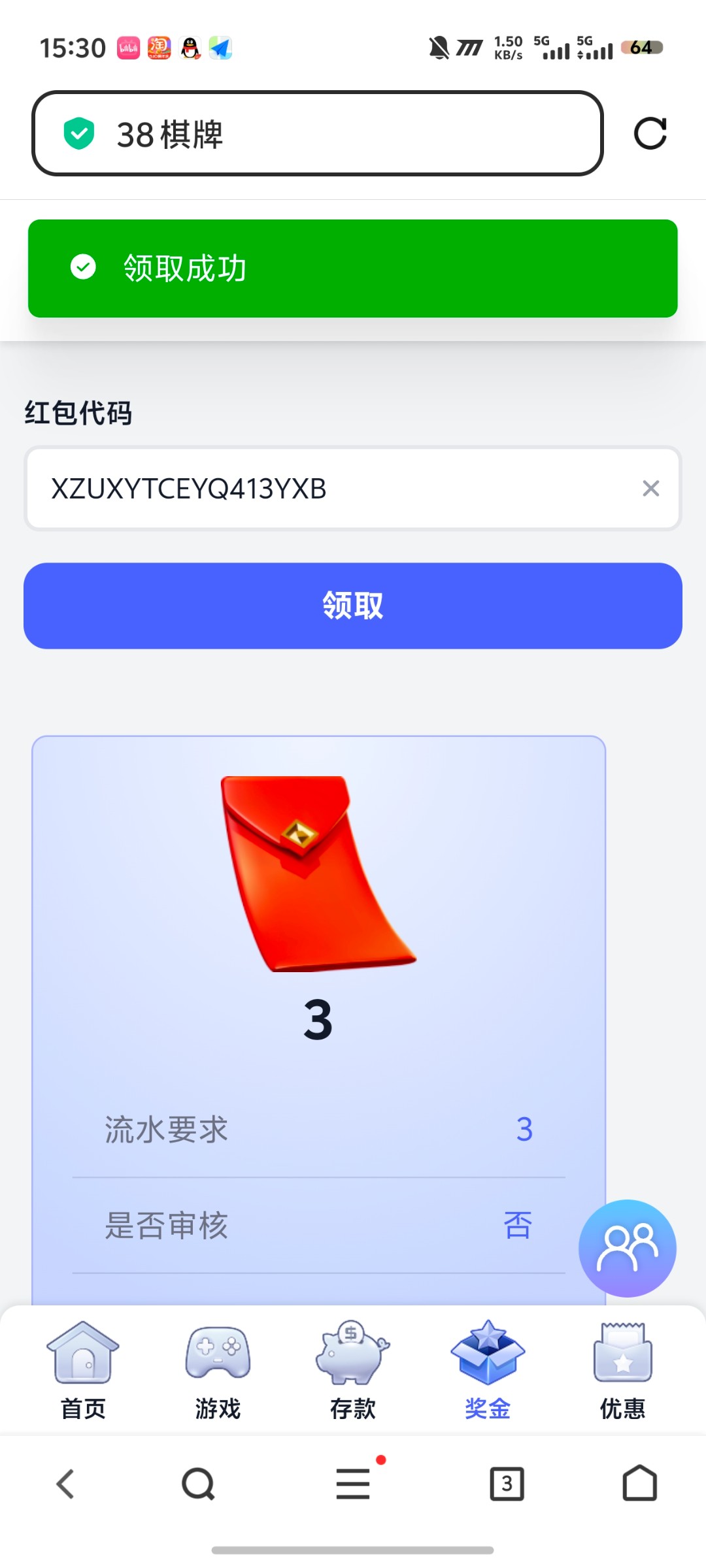 【38棋牌】注册送-商城自助领