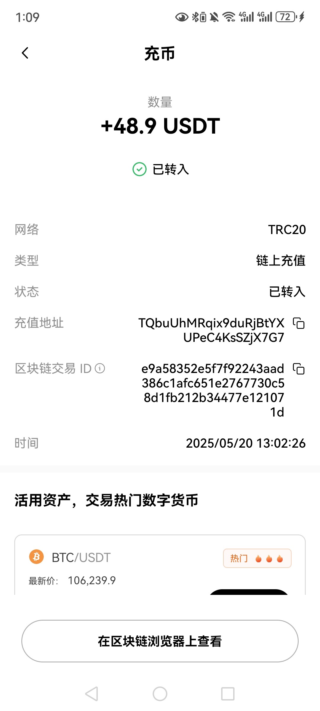 老哥们我直接提到币安的,没换成u,显示已完成,但是没收到啊,有没有个老哥帮忙看下啥情况