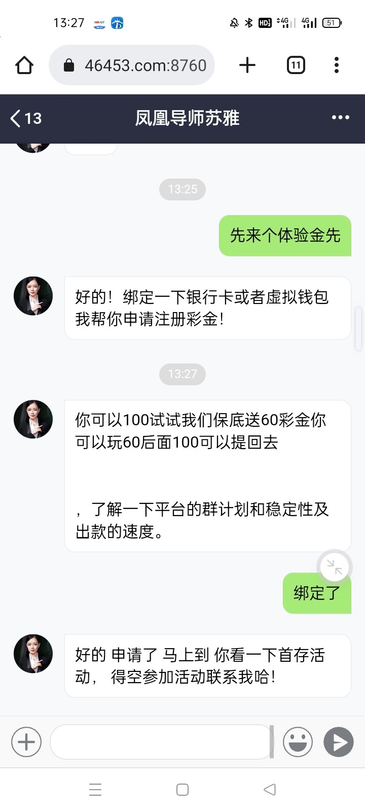 凤凰彩电话送18,电话网址234658.com进去找微聊有个导师交充值送彩金,我直接说先来个体验金先,然后就给了,可以去碰瓷试试,这个应该查电话号码的
