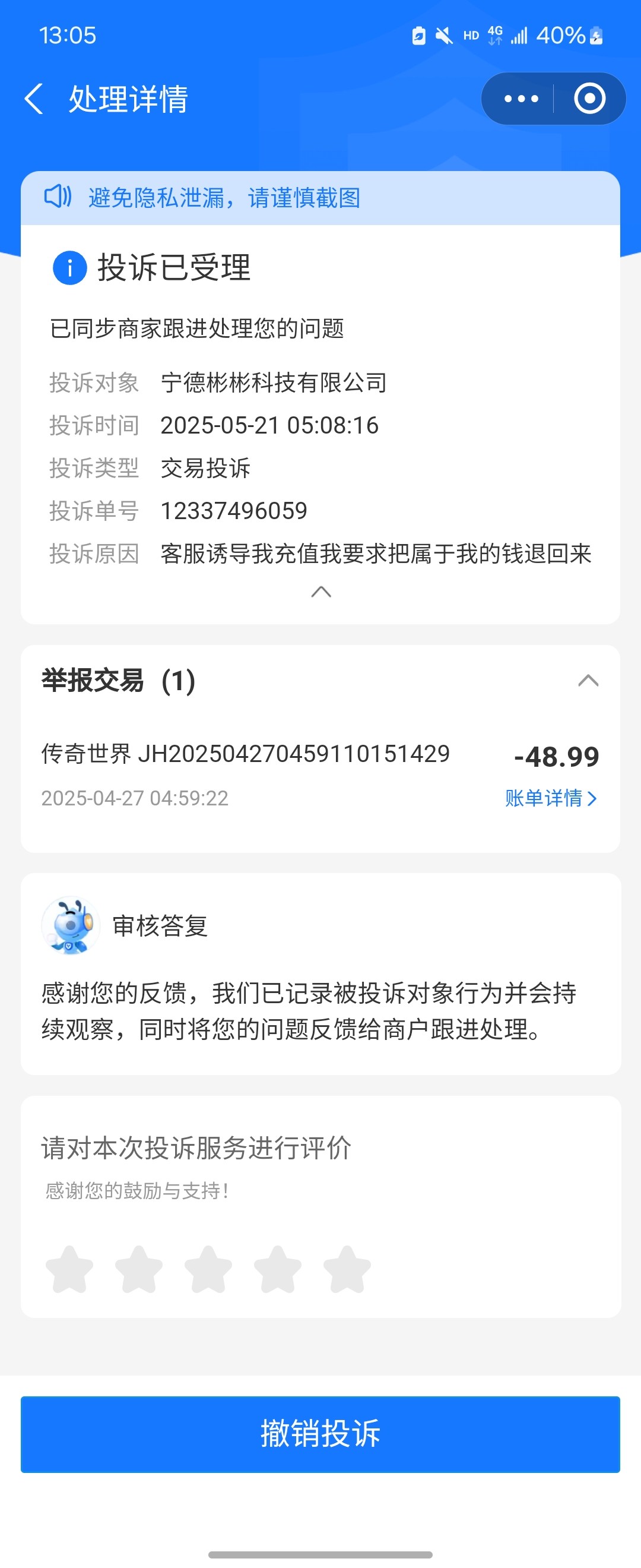 昨天忘记说怎么投诉了,投诉然后,投诉原因就说客服诱导我充值我要求把属于我的钱退回来