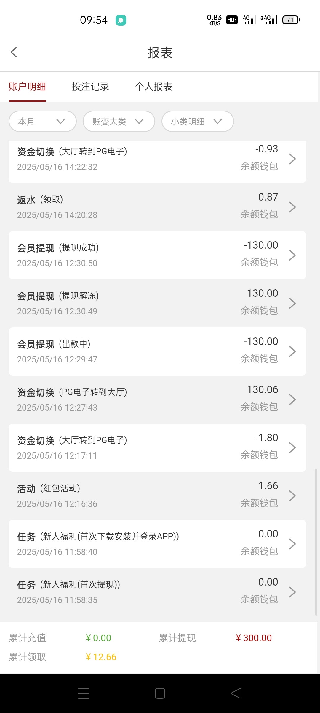 出款情况:自测(