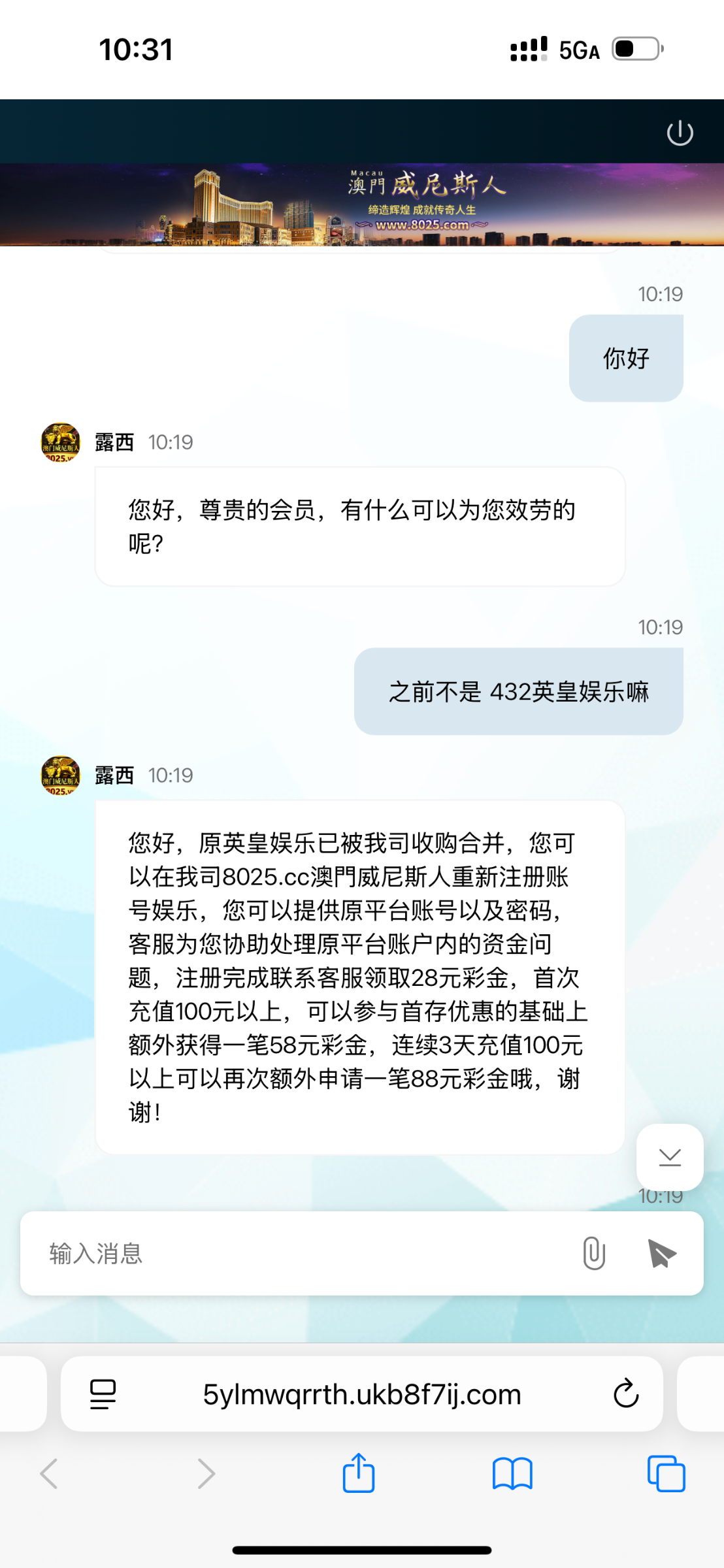 原来的432英皇娱乐升级为威尼斯人8025.com,升级彩金28,已成功出160,各位去白嫖即可