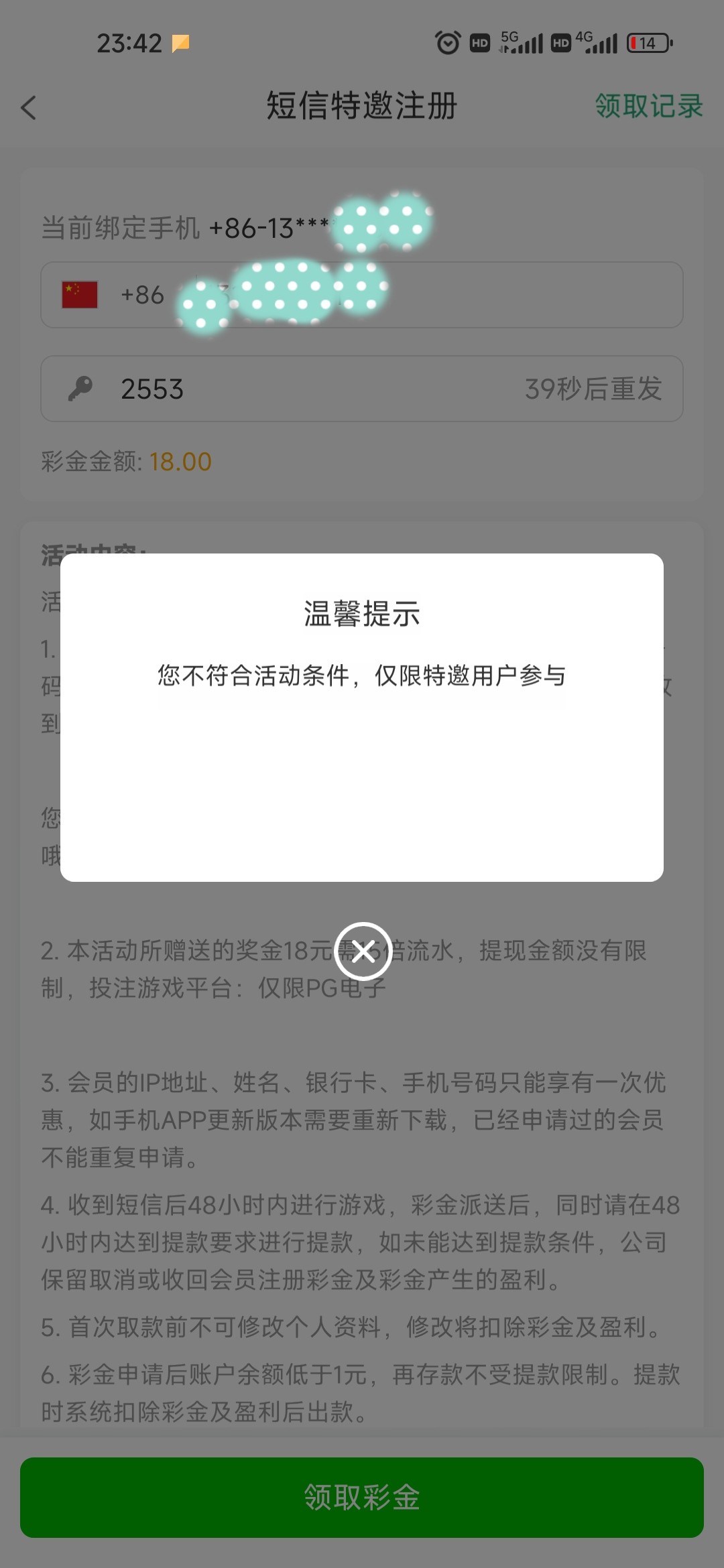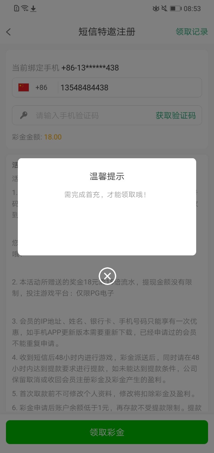 有病这平台,能接收验证码 不给领取