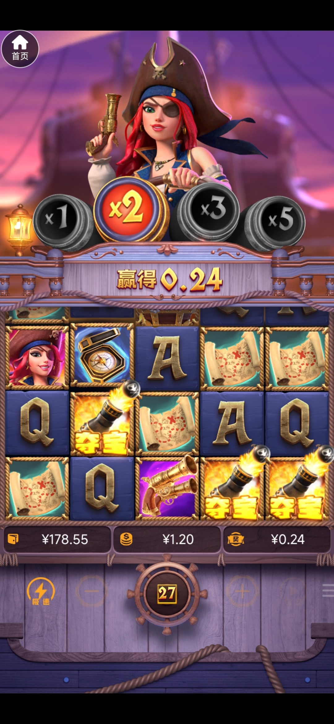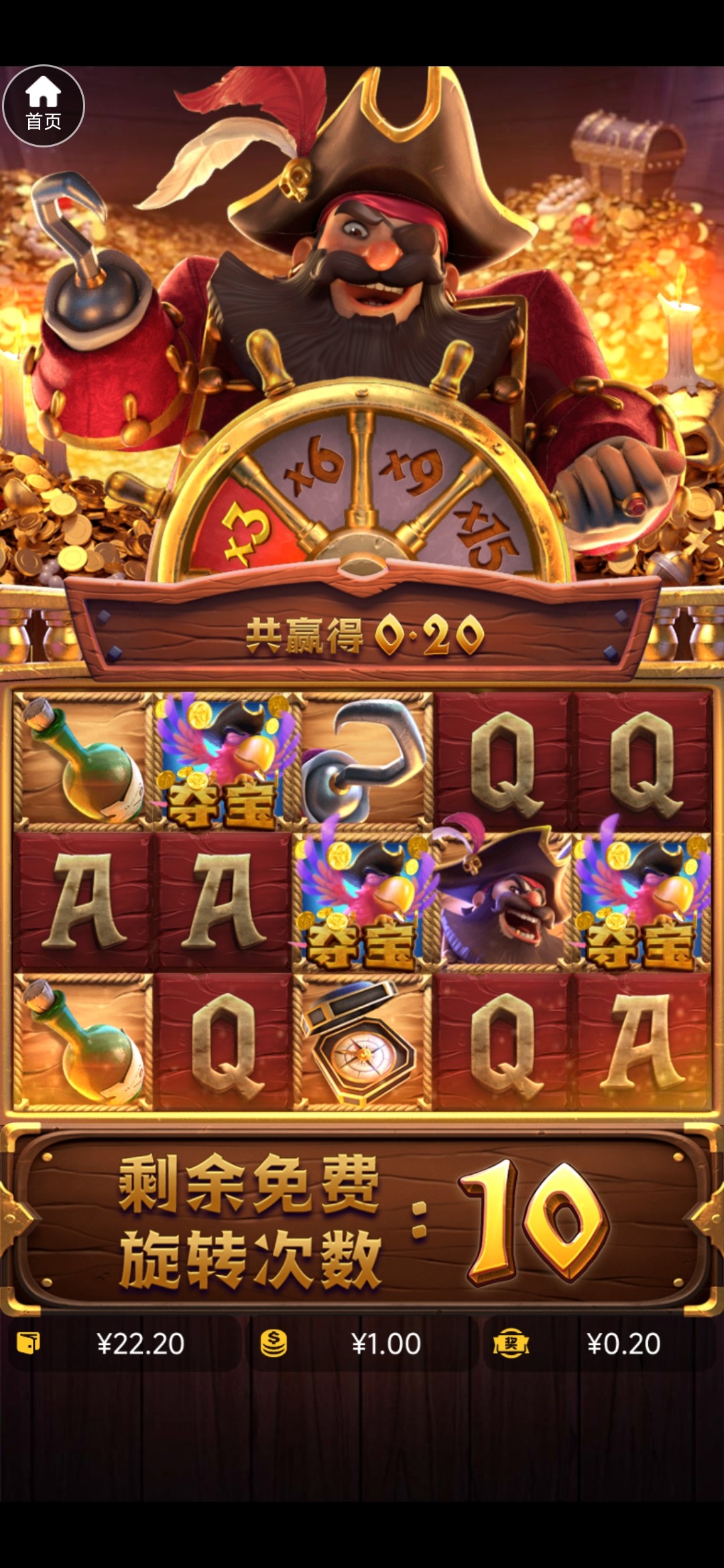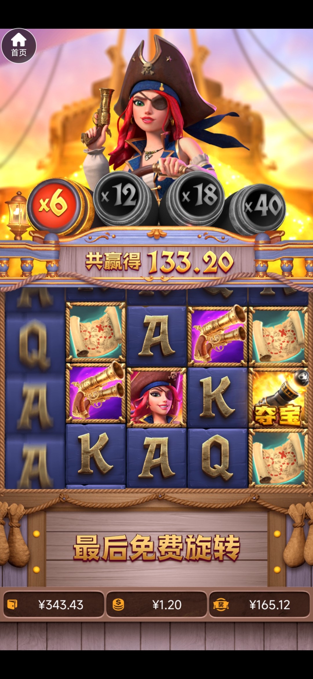 这个台子刚刚上了100 领了50多彩金 女王3.6进了两次免费 一个50倍都没有 4块进了一个免费10倍 40块钱 拉小柱进不了免费一点。