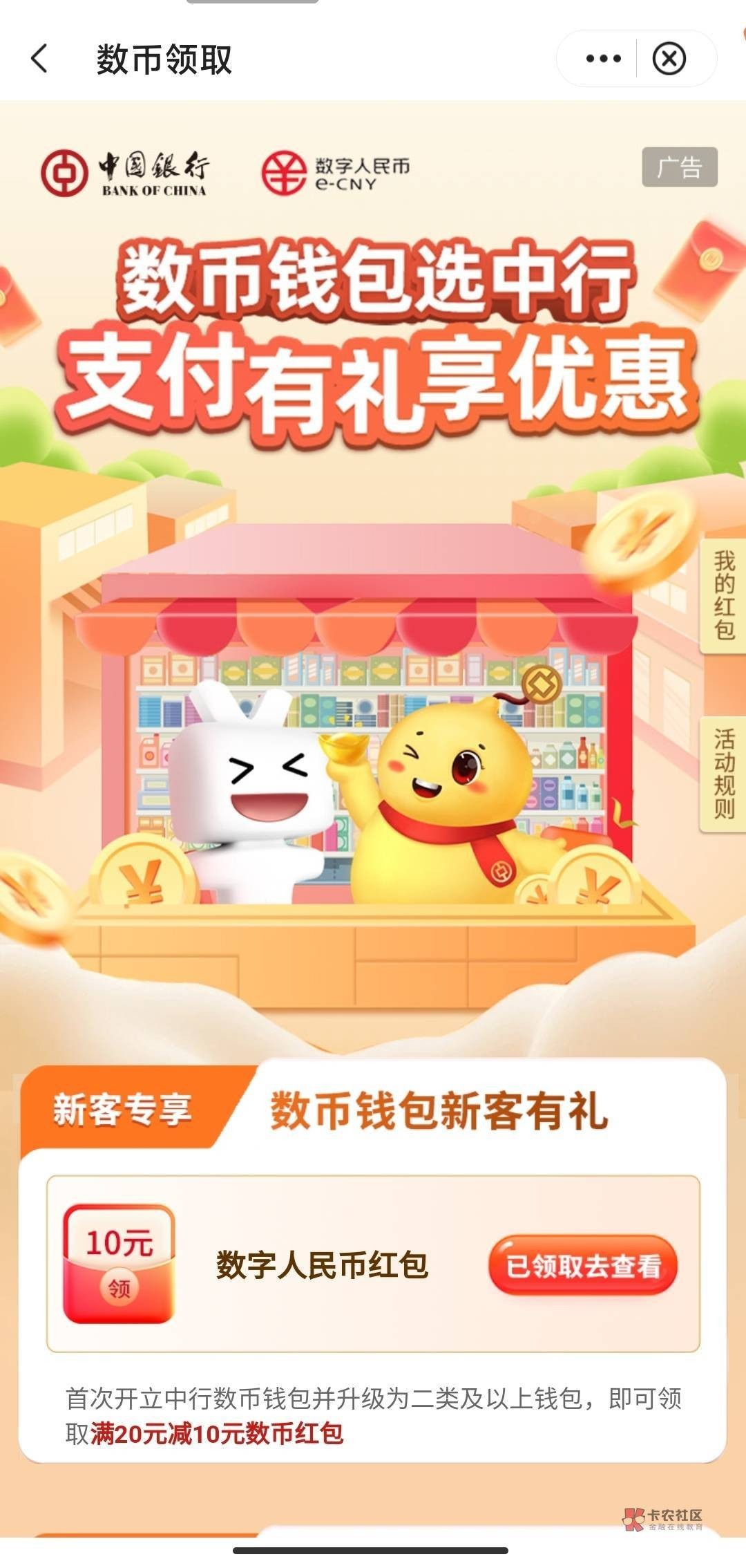 3.中行APP搜数币进去横幅再领10